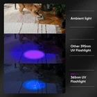 【UPGRADE UV LIGHT SOURCE】Professional ultraviolet flashlight. Uses 4-core 365NM UV LED source rather than the diode lamp, up to 30W output, providing a market-leading beam range of up to more than 30 feet in the dark. Very powerful, so you don't have to be close to the surface for something to fluoresce 【READY FOR ALL YOUR NEED】It's a needed multifunctional uv black light in your life. 1) Daily use: pet urine detection, ringworm, bed bugs, hotel, fluorescent checking; 2)Outdoor use: find scorpions, insects, minerals, blood tracking, rock hunting, like yooperlites, sodalite, firestone; 3)Professional use: resing curing, a/c leak detection, detecting counterfeit money, licenses, ID cards, jewelry, uranium glass, etc 【365NM UV FLASHLIGHT WITH BLACK FILTER LENS】Equipped with Multi layer filter optical lens, 99% Filter ambient light to make UV more pure. If you are unfamiliar with the differences in UV lights, the 365nm wavelength is the one you want to get maximum effect 【USB RECHARGEABLE FLASHLIGHT】The uv flashlight black light is powered by a large 3000mAh rechargeable that can be used for up to 4-6 hours. With a type-C USB input and output, this rechargeable flashlight can be easily charged and can also serve as a power bank for your devices. You can charge it and don’t have to replace batteries. (Red: Charging, Blue: Fully charged) 【POWERFUL ULTRAVIOLET LIGHT】Heavy duty - well made. Made of high-quality aluminum alloy, greatly enhanced its heat dissipation performance, will not burn even if used for a long time. This high-power 365 uv flash light has strong antioxidant capacity and can be used for more than three years, which is three times than ordinary UV flashlight