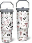 Premium Material Nurse Tumbler:Our nurse tumbler is made from 18/8 stainless steel which insure this nurse cup is not easy to rust, breakage. Besides, our 30oz nurse tumbler design with vacuum double wall. With its excellent thermal insulation properties our nurse cup can keep hot for 8 hours and cold for 16 hours, which allowing you to drink your favorite cold or hot drinks at any time. Convenience to Use and Carry:The unique flip-up straw design allows you to enjoy your favorite drinks anytime. And there is no need to worry about the straw being exposed to the air and getting contaminated. Combined with the screw-on lid it is 100% leak proof. Comfortable handle allows you to take it anywhere. Besides our nurse tumbler fits most car holder and very suitable for travel. Unique Nursing Element Design:Designed with a stylish nursing element printing, our nurse travel coffee mugs have a unique appearance and are available in a variety of styles. Sincerely sayings to express your thankfulness and appreciation for your best friend, bestie, girlfriend, wife, mom, sister. Let the noble nurses around you know how proud you are of them. Widely Usage Scenarios:Our nurse coffee mug is perfect for any indoor or outdoor place. The large capacity can meet your daily drinking needs, and the considerate handle is very easy to carry. Perfect for enjoying drinks at home, at the beach, at the lake, at the pool, in the office, at parties, RV trips, cabin trips, camping, hiking, picnics and BBQs Best Nurse Gifts for Women:Choose this unique nurse gift tumbler to express your gratitude and love for the important nurses in your life. our nurse water bottle is great as RN gifts for women, nursing gifts for new nurses, rn gifts for nurses, nursing student gifts, new nurse gifts , LPN gifts nurses. This unique nurse coffee mug makes a great gift chioce for a nurse friend, family member or lover