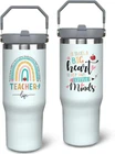 Premium Material Teacher: Our teacher tumbler is made from 18/8 stainless steel which insure this teacher cup is not easy to rust, breakage. Besides,our 30oz teacher tumbler design with vacuum double wall. With its excellent thermal insulation properties our teacher cup can keep hot for 8 hours and cold for 16 hours, which allowing you to drink your favorite cold or hot drinks at any time. Convenience to Use and Carry: The unique flip-up straw design allows you to enjoy your favorite drinks anytime. And there is no need to worry about the straw being exposed to the air and getting contaminated. Combined with the screw-on lid it is 100% leak proof. Comfortable handle allows you to take it anywhere. Besides our teacher tumbler fits most car holder and very suitable for traveling. Unique Teaching Elements Design: Designed with a stylish teaching elements printing, our teacher travel coffee mugs have a unique appearance and are available in a variety of styles. Sincerely sayings to express your thankfulness and appreciation for your best friend, bestie, girlfriend, wife, mom, sister, teacher. Let the noble teachers around you know how proud you are of them. Widely Usage Scenarios: Our teacher coffee mug is perfect for any indoor or outdoor place. The large capacity can meet your daily drinking needs, and the considerate handle is very easy to carry. Perfect for enjoying drinks at home, at the beach, at the lake, at the pool, in the office, at parties, RV trips, cabin trips, camping, hiking, picnics and BBQs Best Teacher Gifts for Women: Choose this unique teacher gift tumbler to express your appreciation and thankfulness for the important teacher in your life. our teachers water bottle is great as teacher gifts for women, teacher appreciation gifts, best teacher gifts, teachers day gift. This unique teacher coffee mug is a great gift chioce for teacher gifts for women