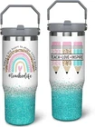 Premium Material Teacher: Our teacher tumbler is made from 18/8 stainless steel which insure this teacher cup is not easy to rust, breakage. Besides,our 30oz teacher tumbler design with vacuum double wall. With its excellent thermal insulation properties our teacher cup can keep hot for 8 hours and cold for 16 hours, which allowing you to drink your favorite cold or hot drinks at any time. Convenience to Use and Carry: The unique flip-up straw design allows you to enjoy your favorite drinks anytime. And there is no need to worry about the straw being exposed to the air and getting contaminated. Combined with the screw-on lid it is 100% leak proof. Comfortable handle allows you to take it anywhere. Besides our teacher tumbler fits most car holder and very suitable for traveling. Unique Teaching Elements Design: Designed with a stylish teaching elements printing, our teacher travel coffee mugs have a unique appearance and are available in a variety of styles. Sincerely sayings to express your thankfulness and appreciation for your best friend, bestie, girlfriend, wife, mom, sister, teacher. Let the noble teachers around you know how proud you are of them. Widely Usage Scenarios: Our teacher coffee mug is perfect for any indoor or outdoor place. The large capacity can meet your daily drinking needs, and the considerate handle is very easy to carry. Perfect for enjoying drinks at home, at the beach, at the lake, at the pool, in the office, at parties, RV trips, cabin trips, camping, hiking, picnics and BBQs Best Teacher Gifts for Women: Choose this unique teacher gift tumbler to express your appreciation and thankfulness for the important teacher in your life. our teachers water bottle is great as teacher gifts for women, teacher appreciation gifts, best teacher gifts, teachers day gift. This unique teacher coffee mug is a great gift chioce for teacher gifts for women