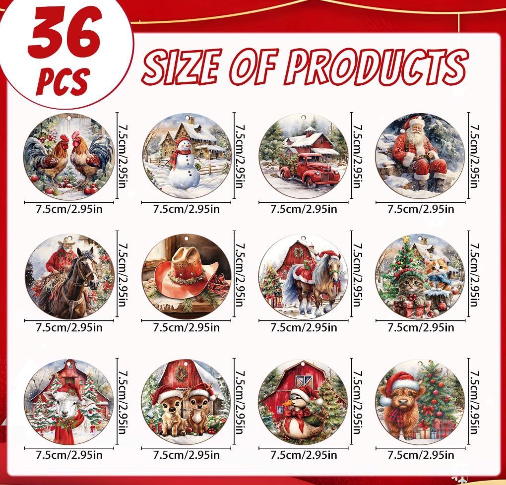 Bring holiday cheer and rustic charm into your home with this 36-piece wooden Christmas ornaments set — ideal for decorating your tree, doors, windows or holiday displays. This set is perfect if you love a cozy, vintage-style holiday look and want easy, festive decorating without spending much. Complete decoration set: Includes 36 cute wooden ornaments — enough to decorate a medium or large Christmas tree, holiday wreaths, garlands, or festive displays. Rustic vintage look: Natural wood, handmade-style details and charming designs (animals, stars, holiday icons) add a warm, cozy and timeless feel to your holiday décor. Easy to hang & reusable: Lightweight ornaments with strings let you hang them anywhere — tree, mantel, staircase, doors or windows. Reusable year after year for a sustainable décor solution. Versatile holiday use: Great for Christmas trees, holiday parties, winter decor, home interiors, office decorations or gift-wrapped packages — adds festive spirit anywhere. Perfect gift idea: A lovely, budget-friendly set — makes a thoughtful Christmas gift for friends, family, roommates or anyone who enjoys seasonal decoration. ✅ Free Shipping & No Customs Fees — shipped directly to you at no extra cost, with no surprise import duties. Add a cozy and festive atmosphere to your home this holiday season with this full, ready-to-use wooden ornament set!