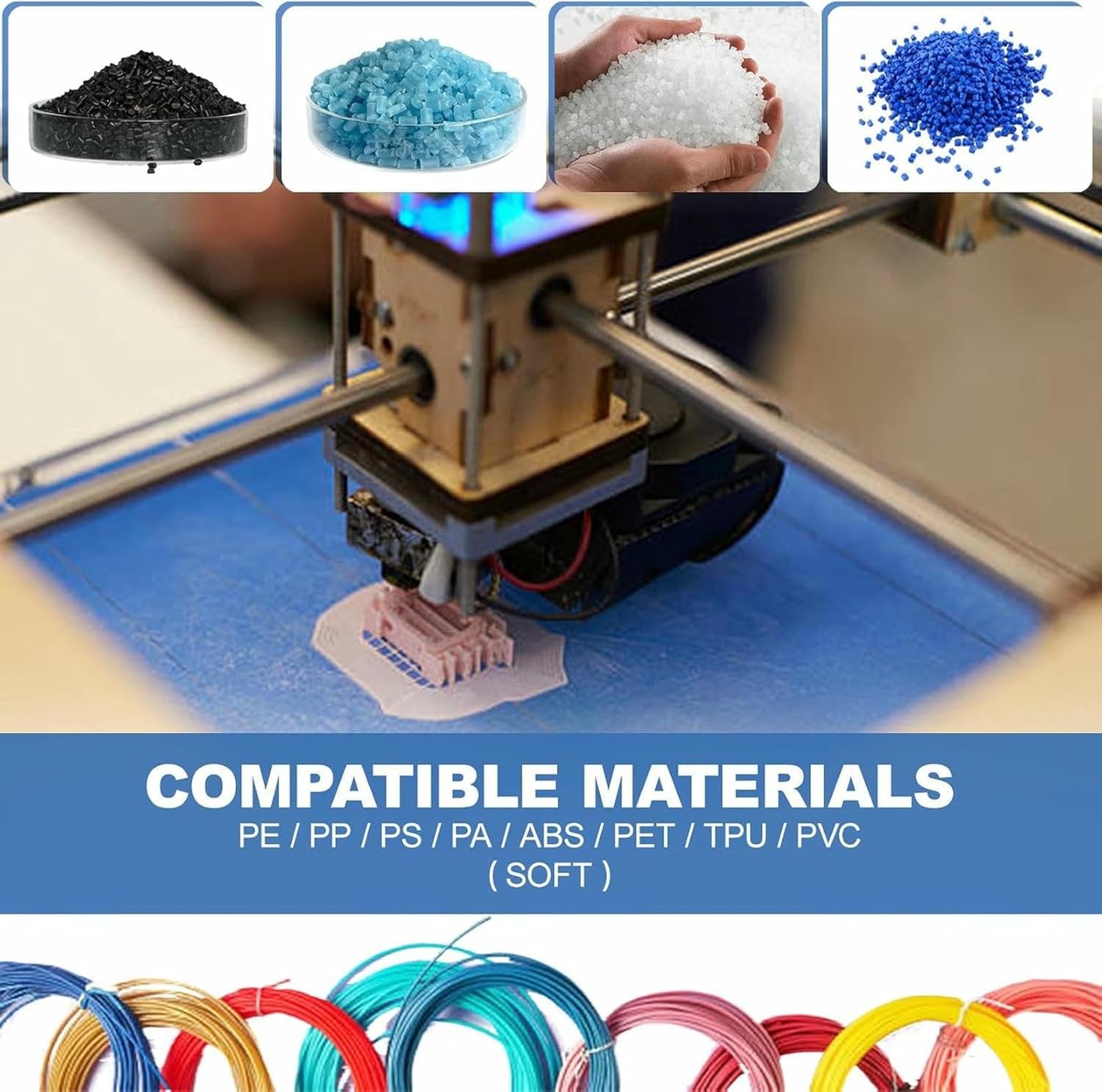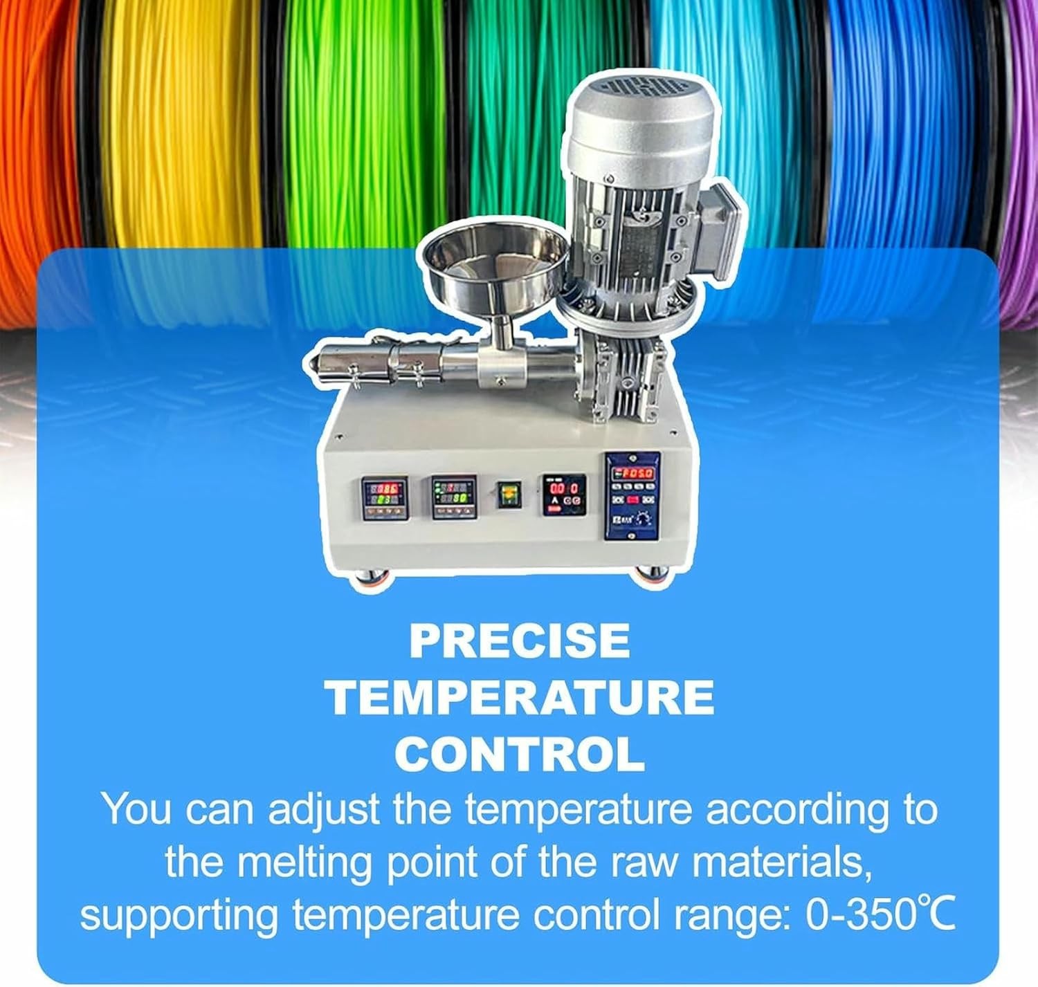 Specifications Temperature Control Range: 0-350°C Power: 1000W Extrusion Speed: 500-1000 grams/hour Screw Diameter: 20 mm Outlet Sizes: 0.175 cm / 0.285 cm / 0.3 cm Compatible Materials: PE, PP, PS, PA, ABS, PET, TPU, PVC (soft) Product Description This 3D Printing Filament Extruder is designed to be space-saving and portable, featuring a user-friendly interface and an easy-to-clean single-screw mechanism. It is ideal for home labs, schools, or 3D printing studios. Service : If you have any questions about this product, feel free to contact us at any time, and we will reply within 24 hours! Wide Material Compatibility : Compatible with a variety of materials including PE, PP, PS, PA, ABS, PET, TPU, and soft PVC pellets. The filament diameter can be adjusted to match your 3D printer's requirements (0.175 cm / 0.285 cm / 0.3 cm). Precise Temperature Control (0-350°C) : With adjustable PID temperature control, this extruder can handle various materials such as TPU, ABS, PET, and PVC. The dual temperature control zones ensure stable melting and reduce the risk of clogging. This compact 1000W extruder is designed for high-speed production, capable of producing up to 1000 grams of filament per hour. It is perfect for small studios, laboratories, or DIY 3D printing enthusiasts. Specifications Temperature Control Range : 0-350°C Power : 1000W Extrusion Speed : 500-1000 grams/hour Screw Diameter : 20 mm Outlet Sizes : 0.175 cm / 0.285 cm / 0.3 cm Compatible Materials : PE, PP, PS, PA, ABS, PET, TPU, PVC (soft) Package Contents Desktop Plastic Pellet Extruder × 1 This 3D printing filament extruder offers a versatile and efficient solution for filament production, making it an essential tool for any 3D printing workspace. Shipping & Handling Return & Refund Payment Warranty & Feedback Shipping & Handling Handling Time: Shipping is usually made in 1-5 business days after payments cleared. Orders are processed from Monday-Friday; Not on the weekends & public holidays,If the machine you order includes voltage or mold, please note the voltage or size you need when ordering so that we can arrange delivery for you! Shipping Time: Items are shipped via SpeedPAK or DHL or any other shipping method that suits your country and we will choose a reasonable method for you. Sales tax/Customs duties: Any sales taxes or Customs duties are not included. If you have any requirements for the declared amount, please contact us. Please note: Buyers from certain remote countries may need to contact us prior to payment. You may be asked to pay for additional shipping costs charged by the shipping company or the order may be automatically cancelled due to insufficient payment of shipping costs. Return & Refund If you are not 100% happy with your purchase, please contact us. Please don't directly opened a request or case without informing us,We are committed to 100% customer satisfaction and we can solve any problem for you, provided you contact us. All returns must be made within 14 days of delivery date. Items must be in new, unused condition, with all original materials included with the shipment. A partial refund may be applied for opened or damaged items, depending on the condition. If the machine is returned without any damage, the return shipping cost must be borne by the buyer and the original shipping cost will be deducted from the refund. Returns that are the result of our seller's error,Buyer will receive a full refund of the item as well as shipping charges. If product was received damaged or not as described, please send us some pictures or videos, so we could well understand your problem, then solve them for you ASAP. Besides, it's much helpful for us to claim with express, remind our related department to pay much more attention to packaging later on. Hope for your understanding. After receiving the machine and inspecting all its accessories, we will arrange a refund for you. After the refund, eBay will process your refund for you. Please receive the refund promptly. Payment Please accomplish payment within 7 days after purchase. If you do have any reason cannot make payment timely, kindly please email me.If the best bids fail to make timely payments, the system will automatically cancel the order. Please rest assured of payment, ebay will guarantee your fund security. Import duties, taxes and charges are not included in the item price or shipping and handling. These charges are the buyer's responsibility. Warranty & Feedback 1 year warranty for the machines, not for the consumables. We stand behind our products all the item, so even if your warranty period has expired, you can still seek for service or technical support from us with low cost. Any warranty shipping cost to us is responsible by buyer. We committee to the customer satisfaction and want to bring you the best purchase experience. If there is any problems, please contact us ASAP. If not, please leave us a positive feedback as it's very important for us. Thanks very much. Business Hour: Monday To Friday: 9:00 AM to 6:00 PM (Beijing China time) Due to time zones, our reply to your questions may not be immediately. But we will reply your email within 24 hours. Please feel free to contact us if you have any questions.