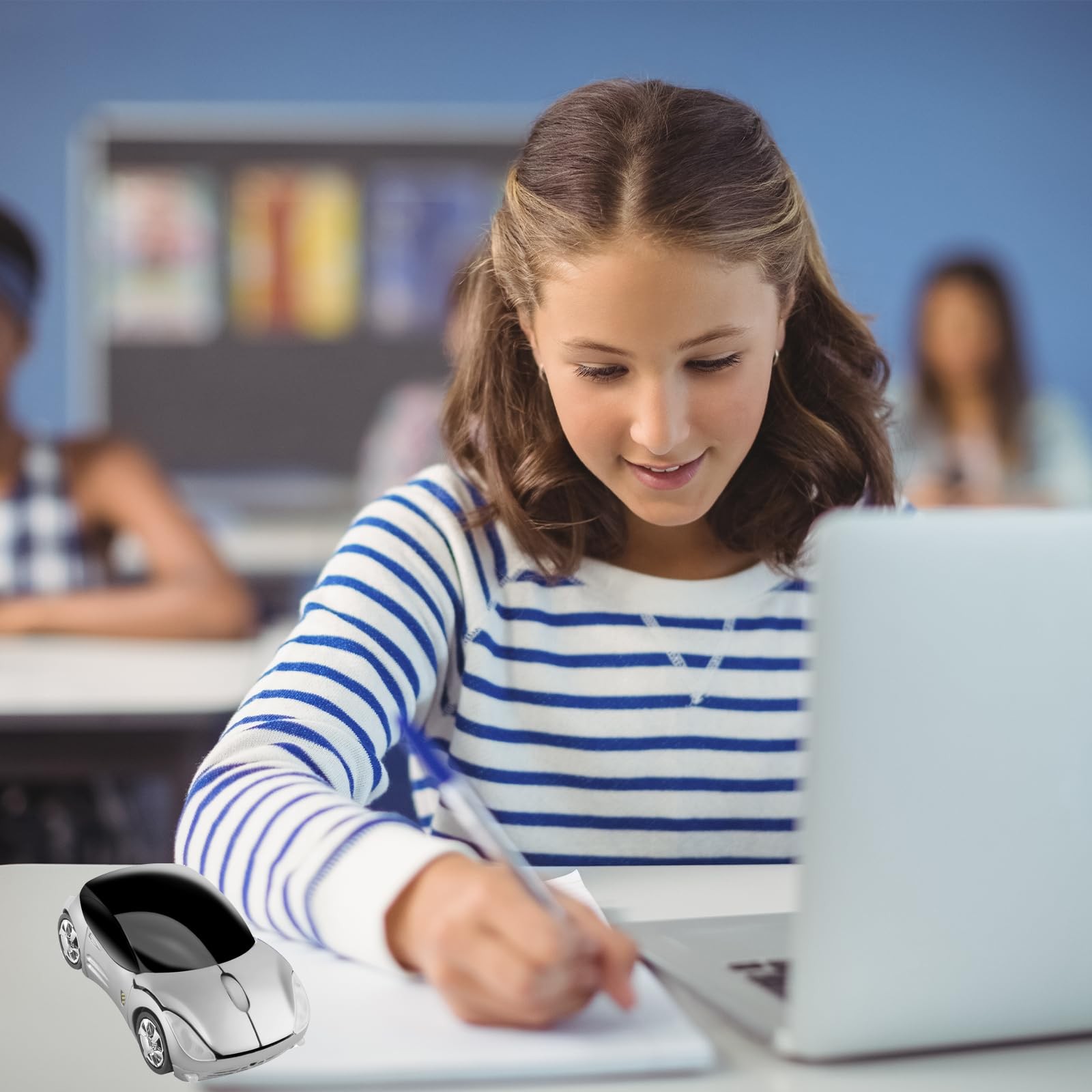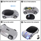Cool sport car-shaped wireless mouse for a laptop computer, with 7 color breathing LED light when using, eyecatching ergonomic design. High quality, specially designed for small hands, a good choice as a gift. Mini Receiver is placed inside the top cover. Lightweight enough to take it everywhere. 2.4Ghz wireless optical technology, transmission up to 10 meters operating distance. Interface: USB 2.0; Plug and play, no need for any drive, works on most surfaces smoothly. Support most operating systems, Windows 98 / ME / NT / 2000 / XP / Vista / Win 7 / Linux or Mac OS. With a cool design and comfortable hand feeling, this wireless mouse gives you a special experience in using it. Powered by 2 * AAA battery (Not Included), Dimension:4.05(L)*1.39(H)*2.2(W)inch, Net weight: 2.1 oz,1600 DPI,3 Buttons. Switch Life: 5 million cycles,Automatically Power saving sleeping function. How to use: 1.Please slide the top cover backward, then you can see the USB receiver and battery slot; Take out the USB receiver and plug it into the computer; Prepare 2* AAA batteries when you first use it(not included); Turn on the switch, use on a mouse pad, the mouse and receiver will connect automatically in a few seconds. 2.If not connect, please turn off the mouse switch, pull down the USB receiver, then plug the USB receiver and turn on the mouse switch again, Press the 3 buttons(left button, right button, scroll wheel) together at the same time for about 3-5 seconds. Package Included: 1 x Wireless mouse 1 x USB receiver (placed inside the top cover) 1 x Using instruction (Warranty:If you have any product quality problems after receiving this mouse, please feel free to contact us, we will give you a satisfactory solution within 24 hours) Wireless mouse sports car shape with 7 color breathing LED headlight, cool gaming mouse for laptop computer, good choice for using or as gifts for family, friends, women, and men Plug and Play, no any drive is needed;Power-saving sleeping function,if the mouse is not used for short time, it will turn to power saving mode to save energy Powered by 2 * AAA battery (not included),Size: 4.05*2.2*1.39 inch,Net weight: 2.1 oz,1600 DPI,3 Buttons (Push the top cover to find the USB receiver and battery slot inside) 2.4GHz wireless digital transmission,operation distance is up to 10 meters;High quality, ergonomic design, comfortable to grip Support most operating system,Windows 98 / ME / NT / 2000 / XP / Vista / Win 7 / Linux or Mac OS and more