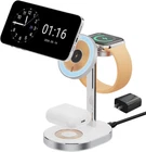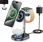【3 in 1 Charging Station】: This charging station is designed to conveniently charge your Apple Watch, iPhone, and AirPods all at once. With its magnetic charging feature, you can easily align your devices for a secure and efficient charging experience. 【Power in 1second Snap】: The magnetic lock feature of this charging station ensures a strong and secure connection between your devices and the charger. You can trust that your devices will stay in place, allowing for uninterrupted charging. 【Made for Apple Watch】: Specifically designed for Apple Watch users, this charging station provides a dedicated spot to charge your watch while keeping it securely in place. The strong magnetic lock ensures that your watch stays in position throughout the charging process. 【Portable Wireless Charger】: With its compact and lightweight design, this charging station is perfect for on-the-go use. Whether you're traveling or simply need a convenient charging solution for your desk, this portable wireless charger is a reliable choice. 【Comfortable View】: The charging station is designed to provide a comfortable viewing angle for your devices while they charge. Whether you're watching videos, checking notifications, or using FaceTime, you can easily view your devices without straining your neck or eyes. Product Description 1 3-in-1 Charge Apple 2 Snap-on Charging 3 15W Fast Charging 4 Clean Your Place Can the charger charge simultaneously Of course, this 3-in-1 charger can charge Apple Watch, iPhone, and AirPods simultaneously. How much does the charger weigh 3 in 1 wireless charging station Not very heavy, probably a little heavier than my phone Is this a fixed charging direction for the charger? No, this 3-in-1 charger can move the viewing angle up and down