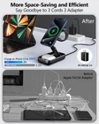 3 in 1 Foldable Wireless Charging Station for Apple Devices 20W Fast Mag-Safe Charger Stand Magnetic Wireless Charger for iPhone 15 14 13 12 Series AirPod iWatch Charger Multiple Devices Adapter [Wireless Mag-Safe Charging Station] 3 in 1 Magnetic Wireless Charger utilizes cutting-edge magnetic technology for rapid and precise alignment, allowing your devices to snap into place in just one second. Enjoy a seamless wireless charging experience with stability and speed. With an adjustable 40°viewing angle and the ability to charge in both vertical and horizontal orientations, you can easily watch videos or respond to messages while your devices charge. [Broad Device Compatibility]: This Apple charging station for Apple devices can charge three devices simultaneously, making it perfect for your iPhone, Apple Watch, and AirPods. It supports the iPhone 12/13/14/15 series, as well as the iPhone 8-11 with Mag-Safe cases. No more tangled cords or cluttered spaces—this essential wireless charger simplifies your life. The station serves not only as a charging dock but also as a convenient stand, keeping your devices easily accessible on your desk. [Efficient Wireless Charging]: Equipped with a PD 20W adapter, Charging station for multiple devices can fully power your iPhone, Apple Watch, and AirPods in just 2-3 hours—50% faster than standard 10W chargers. Simply place your devices on the 3-in-1 charger and experience true wireless fast charging. The station delivers up to 15W for iPhones, 5W for AirPods, and 3W for the Apple Watch. For optimal performance, always use the included adapter and cable. [Safety and Protection Features]: The Mag-Safe charger stand employs a single multi-coil design to minimize device overheating. A built-in smart chipset offers comprehensive protection against over-current, over-voltage, and temperature fluctuations, ensuring your devices are safe while charging. If temperatures rise too high, charging will automatically pause to prevent battery damage. [Smart LED Status Indicator]: iPhone charging dock of charging station for apple devices features a breathing light that clearly indicates the charging status of your devices. This soft glow is ideal for nighttime use, allowing you to check the status without disturbing your sleep. Please note that if the indicator light flashes red, it’s advisable to reach out to customer support for assistance.