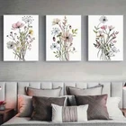 3pcs Watercolor Wildflower Vintage Wall Canvas Unframed