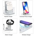 Product Description If you have any questions, please contact customer service first, do not open disputes easily, thank you! Description: 4 in 1 Wireless Charger Stand: The multifunctional charging stand with for iPhone/Micro/Type-C interfaces can charge for almost all mobile devices, such as for iPhone, iPad, Samsung, LG, HTC, Huawei, Sony, and the charging dock can be freely rotated by 360 degrees. To charge 4 device at the time, QC 2.0/3.0 Adapter is needed. Universal Compatibility: Universal Compatible for iWatch series 4/3/2/1, Airpods and iPhone11/ 11 Pro /11 Pro Max / Xs / Xs Max / Xr / X / 8/8 Plus/Samsung Galaxy S10/S10 Plus/ S9 / S9 Plus / S8 / S8 Plus / S7 / S7 Edge / S6 Edge Plus / Note 10/Note 9 / Note 8. Charge Forward: The charging station uses the most advanced automatic control technology. Built-in safeguards feature over-charge, over-current and over-voltage protection, temperature control, foreign object detection. Guards your device battery against overcharge damage. Stable Quality: Innovative Silicone Material, Without scratching of your for iPhone /iWatch /Airpods blocking the screen or edge. Perfectly decorates your bedroom, study, hall, office desk. Easy Installation: Just Install the original for iWatch charger into the stand, then it can work as charging stand for you as the other connector is build-in. Hide the long redundant cables, make your desk or nightstand neatly and organized. Specifications: Input: DC5V-3A, 9V-1.8A Charger output: DC 5V-1.5 A Wireless charger output: 10W/7.5W/5W Working frequency: 110-205KHz USB cable length: 1.2 meters Headphone output: 3W Product size: about 230 × 90 * 57.5mm Package weight: about 270g Color: black, white Package Included: 1* wireless charging stand 1* User Manual About Us We accept all payments authorized by eBay. powered by