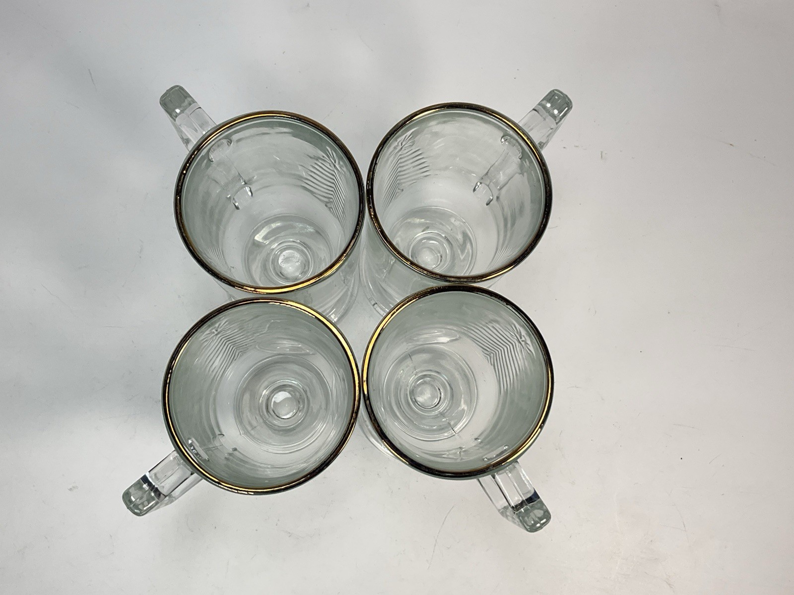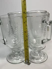 4 Vintage Irish Coffee Pedestal Coffee Mugs Embossed Christmas Trees Gold Rim
