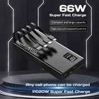 Specification: Item: 66W Super Fast Charge Power Bank With 4 cables ( Without 4 cables ) Capacity: 40000mAh ( 3 00 00mAh ) Input: Micro USB input: 5V/2A Type C Input: PD20W Output: USB Output: 22.5W Type C Output: PD20W Total power: 66W power bank Material:ABS Plastic Color: Black Feature: Support Fast Charge Support PD 20W Two-Way Fast Charging Support PD 3.0 Fast Charging Support Type C Input and Output With LED Digital Display Built-in 4 cables Package Included: 1x Power Bank 1x USB Cable 1x User Manual