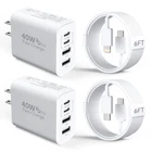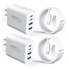 Return Policy Fast Delivery Trusted seller 40W iPhone 15/14 Charger Fast Charging, 4-Port 40W Dual USB-C & USB-A Charger Block with 6FT USB-C to C Cable&USB-C to L Cable for iPhone 15/14/13/12/11 Promax/Pro/Plus, iPad pro/Mini-2Pack Product Description 【40W iPhone 15/14 Fast Charging Block】:The iPhone 15/14 Charger supports the Power Delivery and Quick Charge 3.0 fast charging functions with a total power of up to 40W.The USB-A port offers an output power of 3.1 A/5 V,while the USB-C port offers a charging speed of 20W.Charge your iPhone devices from 0% to 58% in just 30 minutes. 【Multi-Port USB C/A iPhone Charger】:The 40W iPhone 15/14 Charger block has two USB-C ports and two USB-A ports output, support total power up to 40W. Allows you to charge 4 devices simultaneously to minimize waiting time, also save your space, one of our wall charger can instead of 4 single USB port wall chargers. 【Universal Compatibility】: the iPhone 15/14 charger is compatible with almost all electronic devices,charging for iPhone 15/15 Pro /15 Pro Max/14/14 Pro/14 Pro Max/13/13 Mini/13 Pro Max/12/12 Pro Max/12 Pro Max/12 Mini/SE 2020/11/11 Pro/11 Pro Max/XR/XS/X/8/7,iPadAir/Pro/Mini,SamsungGalaxyS22/S21/S20/S10/S9/S8/A12/A13/A22/A32/A52/A53/A71/Note 20 10,Tablets,LG,Motorola,Google Pixel and other digital devices compatible. 【6ft iPhone 15/14 charger cord】iPhone 15 6ft USB-C to USB-C and USB-C to L Cable upgrade your charging experience. Enjoy extra-long reach for flexibility in any situation, whether you're working, gaming, or just need added convenience. Stay connected effortlessly with our versatile and durable cables. 【Compact Portable &Safty Reliable】: Incredibly compact size for enhanced portability.All this power comes installed in a pocket-friendly compact body, to go wver the journey takes you. Ideal for home, office and on the go. Equipped with a smart chip, which can adjust the input power of the phone to prevent the phone from overcharging and overheating. Shipping Returns Payment Shipping Shipping is FREE to all addresses other than APO/PO boxes in the lower 48 states. All our stock ships from US-based warehouses. Shipped via USPS or UPS (depending on location and package weight) Unless stated otherwise, all orders will ship within 24-72 hours of your payment being processed. Check our feedback to see the great reviews of FAST shipping we offer. Returns Seller does not accept returns Payment We currently accept payment via eBay managed payments only. Once payment is cleared, we will dispatch your shipment within 1-3 business days. Please refer to the "Shipping" tab for more information regarding shipping speed to your destination.
