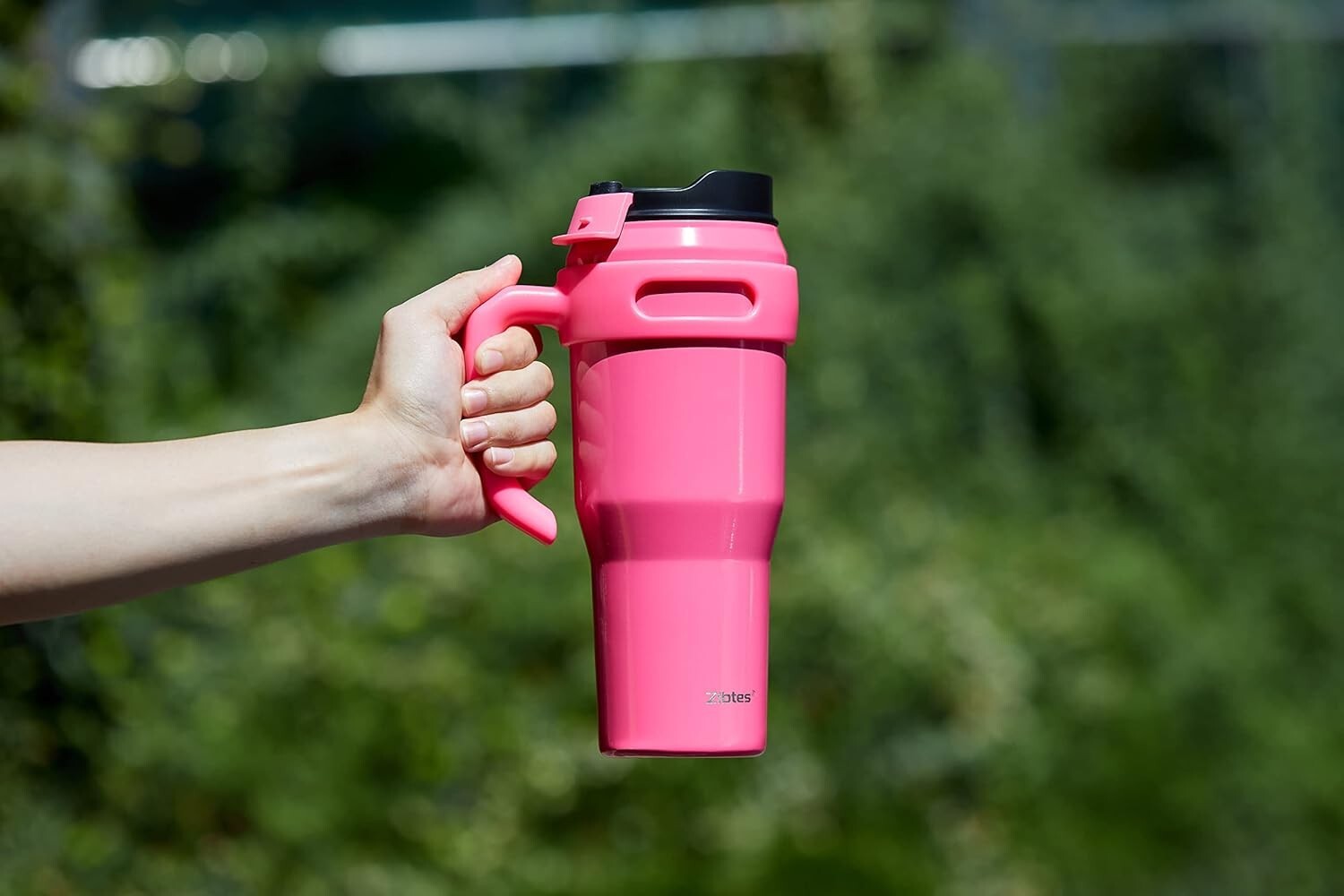 DESCRIPTION Brand Zibtes Color Hot Pink Special Feature Bpa-free,Double,Vacuum Insulated Style Tumbler 40oz Theme About this item STAINLESS STEEL INSULATED TUMBLER: It is made of food-grade 18/8 stainless steel. Stainless Steel Coffee Tumbler is firm, Rustproof, No harm to human health, and without metallic taste. The interior is electro-polished. The outer layer is coated with a powder that is non-sweat. Keep your tumbler dry and neat. 40 OZ BPA-free Travel Cup: Comes with a threaded lid, 100% leak-proof or bullet-proof. You don't have to worry about spilling it when you carry it. Plus a removable handle, two reusable stainless steel straws, and brush. VACUUM INSULATED TUMBLER: 40oz Insulated tumbler has a vacuum double wall design which ensures good insulation. No matter which season you are in, you can enjoy your favorite hot and cold drinks for a long time-keeping hot drinks hot for up to 12 hours and cold for 34 hours. Portable super-capacity coffee cup: tumbler (9.84" tall x 4.33" diameter x 3" base) can be safely placed in most car cup holders, With the handle to use more portable. Larger cups are easier to clean.