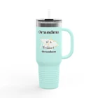 "Grandma of a Brilliant Grandson" Experience hydration on the go with this versatile insulated travel mug. Designed for adventure and daily use, it keeps your drinks hot or cold for hours. Whether you’re hiking, commuting, or enjoying outdoor events, this travel mug fits seamlessly into your active lifestyle. Perfect for Graduations, family outings, picnics, or as a thoughtful gift for friends and loved ones, it adds a personal touch to any occasion. Celebrate family bonds on holidays and special events, making it a cherished addition to your drinkware collection. Product features - Crafted from durable stainless steel for long-lasting use - Double-wall insulation ensures drinks remain hot or cold for hours - Generous 40oz capacity ideal for long trips and outdoor adventures - Ergonomic handle offers comfort and ease of use - Leak-proof lid keeps your beverages secure during travel Care instructions - Clean in dishwasher (put the product on top rack), or wash by hand with warm water and dish soap