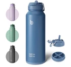 New, Sealed BOTTLE BOTTLE 40 oz sports water bottle stainless steel insulated water bottle with straw and pills holder (blue) DOUBLE INSULATION (1,086) Food grade 304 stainless steel Double-layer insulation design Keep hot water for 16 hours Keep ice water for 24 hours Has hidden storage on the bottom for medication