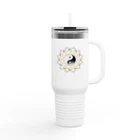 This travel mug is a game-changer! The 40oz size holds plenty, and the insulation keeps drinks hot or cold for hours. Love the ergonomic handle—super comfy to carry. Perfect for yoga, road trips, or just daily use. The yin yang design adds a nice touch. A must-have for anyone who values style and functionality in their drinkware. Great gift idea too!