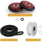 Features COMPLETE DRYER REPAIR KIT - This 4392067 dryer repair kit is a comprehensive solution for common dryer issues like noise, failure to tumble, leaving marks on clothes, or inability to start PRECISE FIT & EASY INSTALLATION - The Whirlpool 4392067 dryer repair kit is designed for a perfect fit with most top name brands, including Whirlpool, Maytag (manufactured after 2007), Estate, KitchenAid, Roper, Inglis, and Kenmore. Its installation is straightforward and can be done by maintenance staff or DIY enthusiasts with the right tools and safety measures. Remember to use high-temperature lubricant during installation to minimize noise. UPGRADED DESIGN - Our 4392067 Whirlpool dryer repair kit boasts of an enhanced design featuring highly resilient polymer compounds. The rollers are robust, wear-resistant, silent, and non-cracking, offering adequate support, stability, durability, and higher efficiency for your machine. The updated 661570V dryer drum belt showcases excellent elasticity and strength, exceeding 5Mpa, tailored to outperform OEM parts and deliver a satisfying shopping experience. REPLACEMENT PARTS - This 27-Inch Dryer Repair Kit (4392067RC) replaces several parts: wpw10314173, 4392067VP, AP3109602, 2015, 587637, 80047, AH373088, EA373088, and PS373088, EAP373088. The 279640 Idler Pulley replaces W10468057, AP3094197, PS334244, among others. The 661570V Dryer Belt replaces 339728, 3387610, etc. Please note, the belt in this kit, part number 661570V with 4 ribs and 3 grooves, 93 1/2" long and 0.3 inches wide, may not work with all dryer models. Double-check before ordering. What's in the Package 4 * WPW10314173 drum support roller wheel repair kits (4 red wheels, 8 tri-rings, and 4 retaining washers) 1 * 661570V dryer drum belt (93 1/2" long) 1 * 279640 dryer idler pulley, which maintains tension on the dryer belt