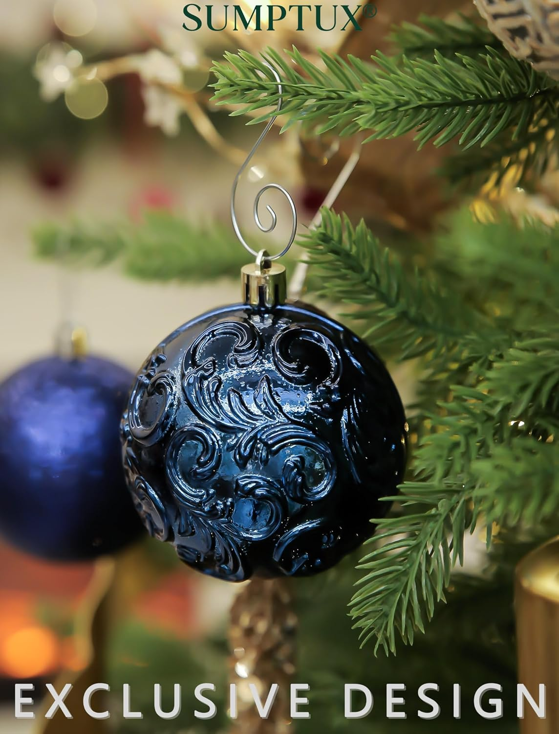 Store New Arrivals Add to Favorite View Feedback Contact 46 Pcs Navy Blue Christmas Ball Ornaments, Shatterproof Christmas Tree Ornaments Set with Velvet Christmas Bows Decor, Vintage Xmas Decorations with Hanging Hooks in 3 Sizes(Small Medium Large) Description Item Weight 12.9 ounces Color Navy Blue Package Dimensions 7.76 x 7.68 x 6.78 inches πππππππ & ππππππππ- Elevate your holiday ambiance with this stunning collection of 2025 Christmas ornaments. The versatile set features 36 navy blue shatterproof ball ornaments and 10 classic velvet ribbon bows that effortlessly complement any holiday theme, from cozy farmhouses to sophisticated vintage settings. With intricate Baroque-style patterns and a variety of finishes, these ornaments are the perfect addition to brighten your Christmas tree, mantel, or staircase. πππ π πππππ ππ πππππππ: Mixed Ball Ornaments are an excellent value. They are assorted among various colors and finishes, including matte, metallic, and glitter. Featuring 36 pcs handcrafted Christmas balls in three elegant sizes- large(3.16"/80mm), medium (2.36"/60mm) and small small (1.57"/40mm), this set offers endless styling possibilities. ππ₯ππ ππ§π πππ₯π―ππ ππ¨π°π¬: Discover the perfect finishing touch for your festive decor! Each set includes 10 Pcs stunning navy blue velvet Christmas bows paired with charming Christmas ball accents. Adorn your Christmas tree with these luxurious bows for a rich, layered look, also add sophistication to your holiday displays on tables, mantels and shelves, or use them to elevate gift wrapping or as charming accents on wreaths and centerpieces ππ±ππ«π ππ«π§ππ¦ππ§ππ¬ ππ¨π¨π€π¬: Each ball features a pre-attached hanging cord, making it effortless to create stunning displays. With 36 sturdy hooks included, youβll have endless ways to decorate your homeβhang them on staircases, along hallways, or in living rooms to create a magical holiday atmosphere. Perfect for layering or mixing with other ornaments, these versatile pieces will help you create a truly unique festive look this season. ππ¨π¦π¦ππ«ππ’ππ₯ ππ«πππ ππ«π§ππ¦ππ§ππ¬: Crafted with a sturdy plastic construction for exceptional durability, these ornaments feature a water-resistant and fade-resistant finish to withstand the elements. Imagine them glistening on Christmas trees, adorning holiday wreaths, or brightening up festive garlands. These stunning ornaments are sure to create a magical atmosphere, whether you're decorating for the holidays, a wedding, or a festive gathering. Product description **Christmas Ornaments Set: Elevate Your Holiday Decor with Timeless Elegance** Transform your holiday celebrations into a magical experience with this stunning 2025 Christmas ball ornaments set. Designed to bring timeless charm to your home, this versatile collection features 36 elegant, shatterproof ball ornaments in three sizes and 10 luxurious velvet ribbon bows. Whether you're creating a cozy farmhouse vibe or a sophisticated vintage look, this set is the perfect way to elevate your festive decor. **Discover the Perfect Blend of Colors and Finishes** Our ornaments are crafted with intricate Baroque-style patterns and come in 16 stunning colors, including matte, metallic, and glitter finishes. This assortment allows you to mix and match for a truly unique and layered look. Hang them on your Christmas tree, use them to brighten your mantel or staircase, or even incorporate them into festive garlands for a touch of elegance. **Whatβs Included in This Christmas Ornaments Set:** **Small Christmas Ornaments (1 3/5 inches):** 18 pieces **Medium Christmas Ornaments (2 1/3 inches):** 12 pieces **Large Christmas Ornaments (3 1/6 inches):** 6 pieces **Velvet Christmas Bows:** 10 pieces **Ornament Hooks:** 36 pieces **NEW DESIGN CHRISTMAS SET** 3 unique spherical designs, breaking the previous outdated style, making your Christmas tree no longer monotonous and boring. Novel but enough vintage and classic style, which is distinctive. **Elevate Your Decor with Luxurious Velvet Bows** Each set includes 10 elegant velvet ribbon bows, each paired with charming Christmas ball accents. These bows add a touch of sophistication to your holiday displays, whether you're decorating your tree, arranging a centerpiece, or wrapping gifts. Their versatility makes them a must-have for any festive occasion. **High Quality Hooks** The set also comes with 36 S hooks. When you feel that hanging string is no longer satisfying your visual aesthetic, you may replace it with hooks. The hooks can also be used in various decorative scenes such as wreaths, garlands, Christmas trees, etc., eliminating the inconvenience of rope. **Built to Last, Made for Any Occasion** Crafted from durable, weather-resistant materials with UV protection, these ornaments are built to withstand the elements. Whether you're decorating indoors or outdoors, for the holidays, a wedding, or a festive gathering, these ornaments are sure to bring warmth and charm to any occasion. **Create a Holiday Thatβs Truly Yours** With this Christmas ornaments set, the possibilities are endless. Whether you're decorating your home, office, or event space, these ornaments will add a touch of elegance and holiday magic to everything they touch. Let your creativity shine and make this season unforgettable! ABOUT US We offer the best prices around on high quality products. Our E-store includes media such as books, movies, music and games while offering electronics, toys, sporting apparel, clothing, tools, general home, garden items and more. SHIPPING We are always working hard to ensure your package arrives as soon as possible. Please understand that some factors like weather, high postal traffic, and the performance of shipping companies are outside of our control. We offer free shipping to the lower 48 states and ship within 2 business day