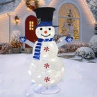About this item Attractive Christmas Decor:Our lighted snowman is 4 ft tall, which is perfect decoration in Christmas season. With pre-lit lights,the outdoor snowman brings rich Christmas atmosphere. The Lighted hands say hello to everyone who visit your family. Lighted Collapsible Christmas Decoration - The 4FT snowman decorations with 120LT white light bulbs, wearing black top hat,Blue and white stripes scarf, carrot nose, bring warmth to families, creating a warm Christmas atmosphere Easy to Install - Collapsible structure makes easy assembly and storage. Christmas collapsible decoration no tools or specialized skills are required, you can use the ground stake to fix firmly if displaying outdoors in fine weather. (Please refer to the instructions for more details) Great Christmas Decoration - Suit for Christmas outdoor yard garden decorations, Christmas themed party, indoor & outdoor decorations, Christmas event decoration, Christmas Eve night décor, pop-up Christmas decor, winter decoration, party favor Christmas prop, classroom decorations and more. It is also an ideal and considerable Christmas gift for friends, family or relatives Safe and Durable - Pre-lit pop up Xmas decor Certified plug with built-in fuses meet US electricity standard, Low voltage provides the steady current during for steady and long-term operation. The stand is made of durable and high quality metal, and the surface is made of soft and thickened fabric, not easy to damage and can be used for years. ractical Application – Light up Christmas decoration are suitable for home, patio, lawn, garden, bistro, pub, cafe, restaurant, shopping center, supermarket, New Year, birthday, gathering, disco ball party, dinner party, evening party and wedding.