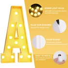 1 Packaging: You will get marquee letters pre cut foam boards, operating instructions, light string.The light needs to be equipped with 3xAA batteries.(Noted: Glue and batteries are not included) Marquee letters 4 feet tall: 4FT giant marquee letters is an attractive decoration for your birthday party decorations, wedding, and creating personalized activities. Easy to assemble: The pre cut marquee letters group has been set. According to the detailed operation instructions, it only takes 15 minutes to build the marquee letters. Stability and firmness: The 4FT giant mosaic balloon frame is made of solid foam board, with a fixed plate at the bottom, so you don't have to worry about it turning over. Satisfaction commitment: we will provide high-quality after-sales service, and we will be happy to help you set up the marquee letters!