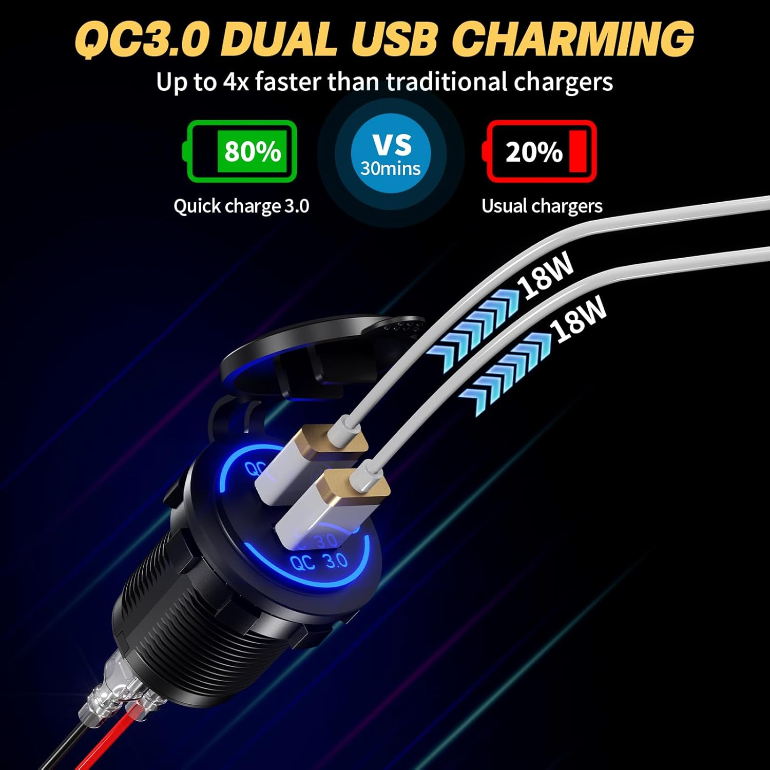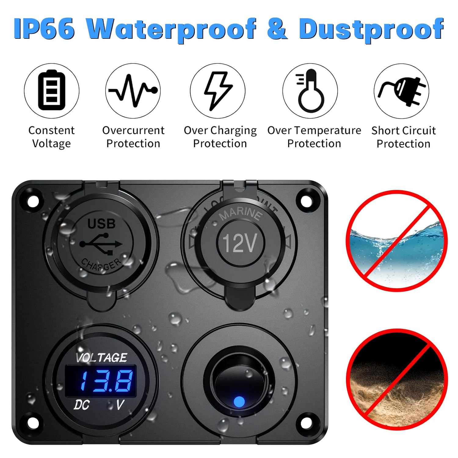 Store New Arrivals Add to Favorite View Feedback Contact 4 in 1 12V Outlet Charger Socket Panel, 36W Power Dual QC 3.0 USB Car Charger Outlet Socket, Cigarette Lighter Socket with LED Voltmeter Rocker Toggle Switch for Car Boat RV Truck Description Item model number f3b8c104-5a1e-4cf8-969c-55c26222c2c8 Item dimensions L x W x H 0.04 x 0.08 x 0.04 inches Current Rating 10 Amps Operating Voltage 12 Volts Product Dimensions 0.04 x 0.08 x 0.04 inches; 5.61 ounces Country of Origin China Connector Type Usb Terminal Through Hole Contact Type Normally Closed Operation Mode ON-OFF Switch Type Rocker, Toggle Material Aluminum, Stainless Steel, Acrylonitrile Butadiene Styrene See more Actuator Type Rocker Circuit Type 4-way Mounting Type Panel Mount Specification Met CE 4 in 1 12V UBS Charger Socket Panel: Kewig multifunctional 12v switch panel come with Dual USB C car charger, cigarette lighter socket, LED voltmeter digital display, rocker toggle switch, Compact 4-in-1 design that saves space and can fulfill all your charging needs Dual 18W QC3.0 USB Charger ports: Our 12V marine switch panel with dual USB charger, total output up to 36W, providing 4X faster charging speeds for compatible devices, charging from 0% to 80% in just 35 minutes Safe Protection: Internal circuit adopts a completely enclosed design, Output short circuit, overload, over-current, reverse polarity protection ensure the circuit won't be burnt out if wrong wiring, IP66 WATERPROOF GRADE, which makes it ideal for use on boats or in other wet environments. Let you easily install in both 12V and 24V vehicles, marine boats LED Voltmeter & Toggle Rocker Switch: The LED voltmeter to monitor your car battery in time, shows the health of the battery while driving, real-time monitoring of the battery voltage, and convenient to know the battery status, The toggle switch that lets you control the power to the entire panel Wide Compatibility: Quick charge 3.0 dual USB charger socket panel fit for DC 12V - 24V car, boat, marine, golf cart, ATV, RV etc, This USB charger outlet is suitable for charging cellphones, tablets, power banks, video games controllers, sports watch and other digital equipment Product Description ABOUT US We offer the best prices around on high quality products. Our E-store includes media such as books, movies, music and games while offering electronics, toys, sporting apparel, clothing, tools, general home, garden items and more. SHIPPING We are always working hard to ensure your package arrives as soon as possible. Please understand that some factors like weather, high postal traffic, and the performance of shipping companies are outside of our control. We offer free shipping to the lower 48 states and ship within 2 business days of payment, usually sooner. We do not accept P.O. Boxes. Please provide a physical address. For shipping outside of the continental USA, we only use eBay's Global Shipping Program.The item is shipped to KY and then sent to the rest of the world. International customers are responsible for all duties and taxes. Continue to check out in order to calculate costs for shipping the item to your country. Messages regarding eBay's Global Shipping Program MUST be directed at eBay EXCLUSIVELY. RETURNS We offer a 30-Day Return Policy on items which you are not completely satisfied with. You have the option for a full-refund or an exchange of the item. No returns are available on items shipped outside of the USA. PAYMENT We accept PayPal. CONTACT US This page content is yet to come Please ad us to your favorite seller and visit again later Thank You CUSTOMER SATISFACTION We try our very best to make sure every customer is completely satisfied. If there's a problem, message us! We're happy to help. WE ACCEPT Copyright © 2021 AutoDS. | All Rights Reserved