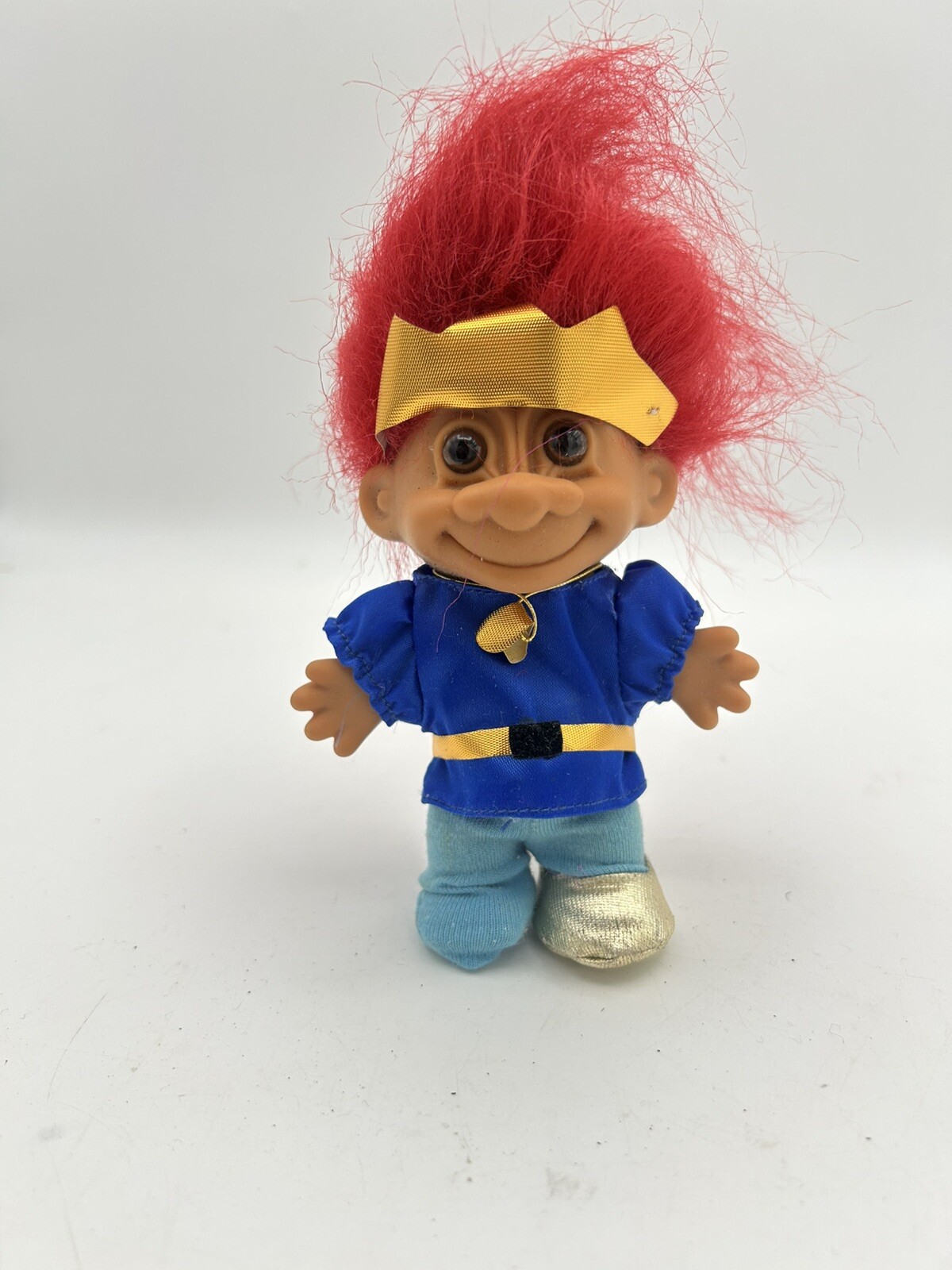These adorable Russ troll dolls are a nostalgic blast from the past! The vibrant blue and red hair stands out, with one wearing a cute rabbit hat and the other in a Prince Charming outfit. Perfect for collectors or as a fun Easter or Halloween decoration—love that they come in their original '90s packaging! Great condition, genuine vintage charm.