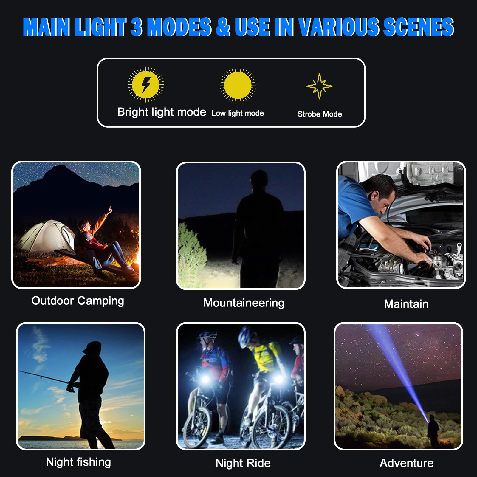 With an astonishing 5000 lumens, this flashlight is incredibly bright, capable of illuminating even the darkest corners of your home, campsite, or tactical environment. Designed with a rechargeable battery, this flashlight not only saves you money by eliminating the need for constant battery replacements, but it's also eco-friendly. Simply charge it up and you're ready to go, no matter where your adventures take you. 3 Lighting Modes: With 3 different lighting modes, you can customize the brightness to suit your needs, whether it's for camping, home use, or tactical purposes. High Lumens: Boasting 5000 lumens, this flashlight is incredibly bright, illuminating even the darkest areas. Heavy-Duty Design: Built to last, this flashlight can withstand tough conditions and is perfect for a variety of uses. Adjustable Focus: Easily adjust the focus to zoom in or out, making it versatile for different situations.
