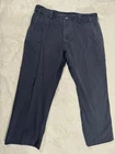 Elevate your style game with these 5.11 Tactical pants for men. These pants come in a classic navy blue color and a regular fit, with a straight leg style and a flat front design. They feature a convenient zip closure and a 5-pocket design with a cargo pocket for added storage. Made from a durable blend of polyester and cotton, these pants are machine washable and perfect for casual or workwear occasions. The mid-rise style and solid pattern make them a versatile addition to any wardrobe, while the button and zipper accents add a touch of style. These pants are available in size 42x27 and are suitable for all seasons.