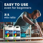 This epoxy is a game-changer! I poured a full two inches crystal clear with zero bubbles, and it cured perfectly without yellowing. Super easy to mix and use, even for beginners. My river table project looks absolutely professional!