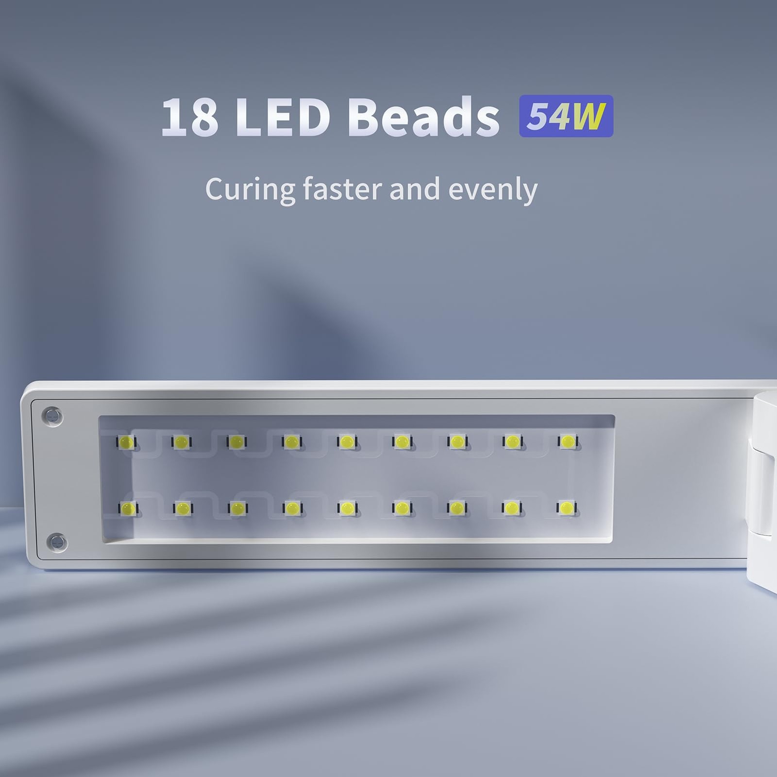 This UV resin curing lamp is a game-changer! The 54W power and 18 dual-light beads cure projects fast while reducing light decay. Its USB power makes it super convenient, and the touch switch is effortless—just press and go. The foldable design saves space, and it works perfectly for nails, jewelry, and crafts. No complicated settings, just quick, even curing every time. A must-have for resin artists!