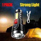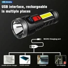 ↵ Specifications: 1. Type: Handheld Flashlight 2. Material: ABS 3. Shell Color: Black 4. Light Color : White 5. Power Supply: Built-in Rechargeable Battery 6. Size: 145.5 * 57mm 7. Switch Type: Click 8. Modes: 4-Modes(Strong light-Low light-Strobe-COB side light) 9. Battery Capacity: 1200mAh 10.Waterproof Grade: IPX4 Â Waterproofing design, but don't deep it into water. Â Package Included: 1x LED Flashlight 1x USB Charging Cable Super Bright 5500000LM 4-Modes COB Torch USB Rechargeable Flashlight Spotlight Product Description Durable to Use with Great Performance: High-quality and high-strength ABS material, large aluminum reflector, high light-gathering performance, enhanced long-distance effect, can emit comfortable and smooth spots. Attention: You need get it fully charged before use. Fast Heat Dissipation: Thick aluminum lamp cup, large area heat dissipation design. USB Rechargeable: Micro USB charging port, supports multiple charging methods, making charging more convenient. Four-level Real-time Power Display: Charging indication, the blue light flashes when charging and stops flashing after fully charged. 4 Lighting Modes: 4 Different modes: Strong light-Low light-Strobe-COB side light. It can service as a front flashlight or turn on the side light as a table light. Easy to change modes by pressing the switch button gently. Fits in your hand or pocket, backpack, survival bag, or car glove compartment. Built-in Large-capacity Battery: Built-in 1200mAH rechargeable lithium battery allows this flashlight to provide long-lasting illumination. Waterproof Design: IPX4 Waterproof level protect it from splashing water from any angle. Suitable for outdoor environment and adverse weather conditions, but cannot be immersed in water. Please do not submerge in water for a long time. Widely Application: Convenient to operate by one hand, and compact enough to carry to anywhere in your pocket. Ideal for work, reading, night walking, running, hunting, boating, power outages, patrolling, cycling, camping, hiking, fishing, emergency,cavingand other outdoor activities. Perfect gift for a father, husband, wife, or college student for any occasion. If you have any question, please feel free to contact us, we promise you a refund/replace anyway. Specifications: 1. Type: Handheld Flashlight 2. Material: ABS 3. Shell Color: Black 4. Light Color : White 5. Power Supply: Built-in Rechargeable Lithium Battery 6. Size: 145.5 * 57mm 7. Switch Type: Click 8. Modes: 4-Modes(Strong light-Low light-Strobe-COB side light) 9. Battery Capacity: 1200mAh 10.Waterproof Grade: IPX4 Waterproofing design, but don't deep it into water. Package Included: 1x LED Flashlight 1x USB Charging Cable