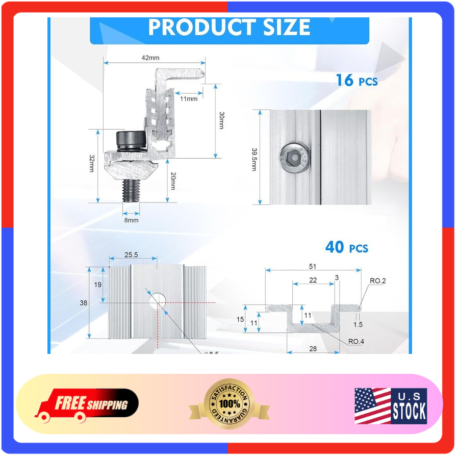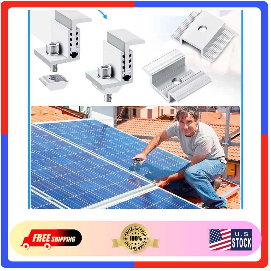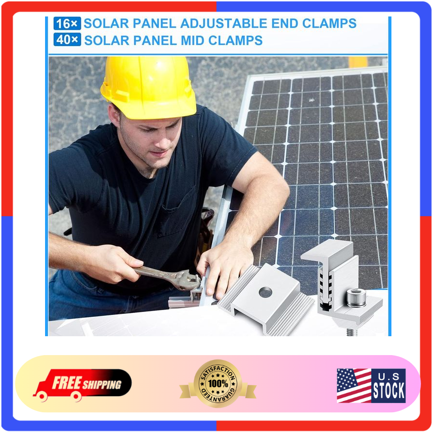 1.06 Inch Solar Panel Bracket Aluminum Solar Mid Clam with Mounting Brackets 32-50 mm Clamps Adjustable End Panel Clamps(56 Pieces) Material Aluminum Brand Zhengmy Item dimensions L x W x H 7.87 x 7.87 x 3.94 inches Color Silver Style Modern Manufacturer Zhengmy About this item Package Contents: you are provided with 40 pieces solar panel mid clamps and 16 pieces solar panel adjustable end clamps, 56 pieces in total, the quantity is sufficient that can meet your daily usage and replacement needs Long Service Time: made of quality aluminum, the surface of the panel clamps is made of exquisite workmanship, will not easy to rust or corrosion, which can serve you for a long period, you can buy and use with confidence Exquisite Workmanship: solar panel adjustable end clamps with accurate design, Z adjustable mounting brackets can work for 50W to 150W panels, can make the connection between the panel firmly, and the aluminium framed panel clamps for fixing panel on the rails Easy and Convenient to Use: these solar panel clamps can make a solid connection between panels, you just need to mount them in the target location, time and effort saving for your installation Widely Applied: designed with an adjustable end clamp design, these aluminum adjustable solar end clamps can be adjusted for different solar panels, suitable for frame solar panels ranging from 35 mm/ 1 3/8 inches to 50 mm/ 1 15/16 inches . We offer FREE shipping on all orders! . We ship within Five business days of payment, usually sooner. . We use a selection of shipping services such as UPS, FedEx, USPS etc. . We only ship to the lower 48 states, no APO/FPO addresses or PO Boxes allowed. . Local pickups and combined shipping options are not provided at this time. . Your satisfaction is a wonderful reward for our efforts. Please assist us by leaving a positive review if you feel pleased with our service. . In the event that you encounter any difficulties related to your order, please do not hesitate to reach out to us directly through the Messaging system on the Ebay platform. Kindly consider opening a COMPLAINT or a RETURN REQUEST as a last resort, only after all other possible measures have been attempted and we have been unable to provide you with assistance. . We will get in touch with you within 24 hours and make every effort to ensure your satisfaction. . Please rest assured of our service quality.