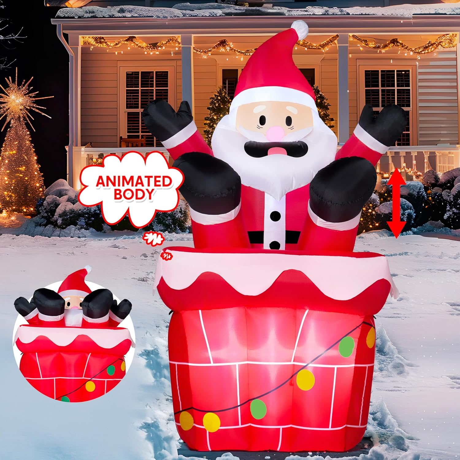 Adorably Funny 5ft Inflatable Santa – This jolly inflatable Santa is 5 feet tall and features him stuck mid-way in a brick chimney—an instant hit with kids and adults alike! It’s a fun and festive twist on a classic Christmas scene. Animated Fun with LED Glow – The animated movement of Santa struggling in the chimney, combined with built-in LED lights, creates an eye-catching and entertaining nighttime display that brings your yard to life. UL Certified for Safety – Includes a UL certified adapter, strong built-in blower, stakes, and tethers—ensuring safe and stable use throughout the season. Perfect for Any Outdoor Display – Whether on your lawn, porch, or by the driveway, this Christmas inflatable outdoor decoration is a must-have. Add it to your collection of Christmas blow up yard decorations to create a holiday scene everyone will love. Quick Setup & Long-Lasting Smiles – Inflates in minutes and is made with durable, weather-resistant material to handle winter conditions. Families love it for the fun animation, easy setup, and festive charm that delights guests all season long! Product description