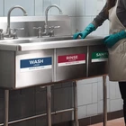 5 Pack Wash Rinse Sanitize Sink Labels, 3 x 9 inches (5 Pack), 5 Product Details Brand: Pixelverse Design Size: 3 x 9 inches (5 Pack) Color: 5 Pack Material: Vinyl Mounting Type: Wall Mount Recommended Uses For Product: Kitchen, Office, Restaurants Product Dimensions: 9"L x 3"W Number of Pieces: 5 UPC: 850005649212 Manufacturer: Pixelverse Design Size and Material: It’s a 3 x 9-inch wash rinse sanitize stickers. Made of vinyl self-adhesive backing and laminating finish Color/Bundle Set: Set of 5 - (Wash, Rinse, Sanitize, Handwash, Employees Must Wash Hands). These 3" x 9" inch decal stickers with large lettering and graphics will help you stay organized. Each sticker is color coded to ease work flow. Application: It’s super easy to use. Just peel, stick, and smoothen out air bubbles with a plastic credit card. It can stick to various clean, flat surfaces -- proven to stick on surfaces such as stainless steel, glass, aluminum, metal, sinks, refrigerators, compartments, etc. Usage: Our hand wash sign stickers are perfect for indoor and outdoor use. These wash rinse sanitize signs can be used as a reminder to always keep our hands clean anywhere we go. Other Features: UV and water resistant No sticky residue Perfect for 3 sink compartments, commercial kitchens, restaurants, food trucks, food festivals, etc. An ideal gift to anyone