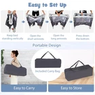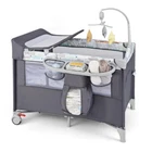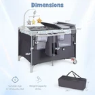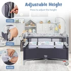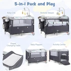 【5-in-1 Pack and Play】This multifunctional baby nursery center can serve as a baby playpen, bedside crib, activity center, U-shaped diaper changing table, and baby crib. Whether it provides a comfortable resting place for your cute baby, or daily activities and care, this 5-in-1 crib is the best choice to reduce the burden on mothers. Other than that, the U-shaped diaper changing table to prevent the baby from rolling off. 【2-in-1 Baby Playard & Bedside Sleeper】Our pack and play not only can be used as a playard, but also as a co-sleeping bed. By putting down the side guardrail, you can get a bedside crib. The attached safety strap can be connected to your bed for increasing stability. Not only promotes parent-infant bonding, but also keeps your little one safely within reach, right at your bedside. NOTE: Make sure that the installation pipes of baby playpen bed are fully installed to avoid tilting problems. 【Connect to Bed's Safety Strap Design】 It is worth mentioning that the armrest is designed with two straps to help you organize the cloth of the armrest and fix it. The attached safety strap can be connected to your bed for increasing stability. This function could keep your baby really close and sleep safe and sound. This baby crib is stable enough for babies from 0-36 months old. (Suitable Mattress Pad's Size: 38''x26'') 【Zipper-Open Side Door Design】For gentle placement of babies or easy in-and-out for toddlers. Our pack and play's zipper-style entrance and exit design on the side makes it easier for babies to enter and exit. And the soft and breathable mesh is good for air circulation and avoids sultry heat. Recommended BABY's weight under 20 lbs. In order to make our baby more comfortable during use, we recommend placing an additional mattress. 【Strong Structure & Premium Material】 Made of sturdy iron tubes and the bottom of the playpen adopts scientific 7-point load-bearing, make this baby crib is stable enough for babies from 0-36 months old. The odorless Oxford cloth provides long-lasting service time and safe environment to rest. The mesh cloth not only features excellent air permeability, but also facilitates parents to observe the state of the child. 【Easy to Fold & Easy to Transport】The Diaper racks, shelves, and bassinet can be easily removed from the baby playard. And the basic bed can be quickly folded up without extra tools. Equipped with a handbag helps you store the folded crib and provides a place for your baby to sleep when you go out to visit relatives or travel. NOTE: Only when the four sides are locked can the middle be pressed down; If you lock the middle part first, it will cause all four sides to fail to lock. 【Convenient & Flexible Babysitting】There are two universal wheels with brakes at the bottom of the baby playard so that it can move flexibly. The 3 different hangings attract the baby's attention, not only promoting the baby's visual development but also improving the grasping ability, and make them fall asleep. In addition, the shelf hanging on the side is convenient for storing various baby necessities.