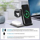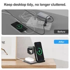 📲【5-in-1 Wireless Charging Station】The charging station is a rare travel set. It has a mobile phone charging position, a headphone charging position, a watch charging position, and a USB interface that can charge various models of mobile phones. The MagSafe 5-in-1 charger can handle and charge multiple devices simultaneously, delivering 15W of power to your phone. Phone MagSafe Charging eliminates the hassle of using multiple chargers and cables at the same time, making it a convenient and efficient solution for all your charging needs. 🛡️【Wide compatibility】5 in 1 wireless charging station compatible with 15/15Pro/15 Pro Max/14/14 Pro/14 Pro Max/13/13 Pro/13 Pro Max/13 mini/12/12 Pro/12 Pro Max/12 mini/11/11 Pro/11 Pro Max/XS/XR/XS MAX/X/8/8/Plus, for iWatch 9/8/7/6/5/4/3/2/SE/Ultra(iWatch only), for AirPods 2/3/Pro/Pro 2 (Note: for Airpods 2/3, needs work with a wireless charging case ) ✈️【Compact and Portable】Our Magsafe charging station features an ultra-compact and foldable design, making it extremely portable and space-saving. You can easily put the wireless charger into your pocket, or pack it into your backpack or luggage, providing you with charging convenience anytime and anywhere, keeping your charging devices organized and reducing the burden of carrying them. ⚡【Safe Fast Charging & Case Friendly】Our charging station provides fast charging even when 4 devices are used at the same time, 5W fast charging for Apple Watch provides fast charging. The built-in smart chipset provides over-current, over-voltage, and over-temperature protection to protect your device while charging. Supports phone cases up to 3mm, no need to remove the case before charging. (Note: Please remove all metal or external magnetic accessories before charging) 👋【Adjustable Viewing Angle】Allows the Magsafe charger to swing up to 90°, and the magnetic charging ring can also be adjusted up and down to give you the right angle and height for the best viewing experience. We designed a night light on the mobile phone charging station, which can be turned on/off by pressing a button.