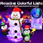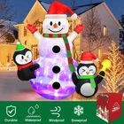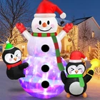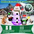 Perfect Christmas Outdoor Decor: 6ft inflatable snowman with penguins can be used for your home, garden or Christmas party. This christmas decorations outside will create warm and fun memories Colorful Rotating LED Lights: Our christmas inflatables built-in colorful rotating LED lights that create a eye-catching display, setting a cheerful atmosphere for the holidays Premium Materials: Our Inflatable christmas blow ups decoration are made of waterproof 210T polyester fabric combined with excellent stitching to increase the durability, ensuring years of use Stable and Windproof: The christmas inflatables outdoor decorations has 2 built-in water bags, 6 stakes and 3 ties to secure the snowman inflatable to the ground increased weight and stability. Nice Gift for Kids: Your kids will be satisfied with the cute xmas inflatables outdoor decorations. Come with 1* inflatable snowman with 2 penguins, 6*stakes, 3*tethers, 2*sandbag and 1*manual