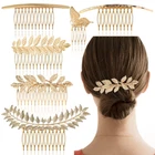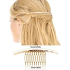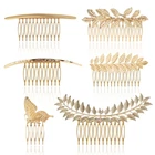 - Romantic Goddess Hair Comb Set - Package includes 6 different golden hair side combs in butterfly, laurel leaf branch and french twist shapes. Vintage palace styles hair comb set to make hair decoration different every day - Durable Metal Material - Well made of durable alloy metal, and the welding process fixes the decoration and the comb tightly is not easy to break or separate. The teeth are not easily broken after repeated adjustment, and can be used for a longer time - More Sizes To Choose From - The leaf hairpin set consists of 5/10/12/15 teeth, you can choose to fix or decorate according to your different hairstyles. Lightweight and versatile side comb for women of all ages from teens, kids, adults, with more possibilities - Suitable For All Hairstyles - Whether you have thick curly hair or long straight hair, childlike and thin hair, a high-quality alloy tooth comb can adjust the gap between the teeth to make it firmly wear on the head without falling out easily - More Occasions Are Needed - A romantic French retro hair clip for all occasions - weddings, anniversaries, proms, graduations, or as a gift for those closest to you, it's also a great choice for everyday wear Product Description 6 Pack Vintage Gold Metal French Twist Hair Side Combs Clip With Teeth Grip Clasp Pins for Women Bridal Wedding Decorative Headpiece SPECIFICATION Quantity: 6 PCS Color: gold Material: alloy metal Shape: butterfly, laurel leaf branch and french twist Approx size: Glossy twist hair comb - 11cm/4.33in Point twist hair comb - 12cm/4.72in Large leaf hair clip - 13cm/5.12in 2 pieces leaf hair clip - 10cm/3.94in Single piece leaf hair pin - 9cm/3.54in Butterfly hair pin - 4cm/1.57in SOME QUESTIONS YOU MAY WANT TO KNOW Q1: I'm always annoyed by not getting the right hair accessories for my thick/thin hair Answer:The alloy material allows the teeth to be repeatedly adjusted to the left and right to be fixed on the head and not easy to fall off. Q2:A single style prevents me from having too many choices when it comes to clothing matching Answer:The set contains 6 different styles of hairbrushes with 5/10/12/15 teeth to match a variety of hairstyles. Q3:I'm worried that it won't last long after I buy it, or I'll receive a damaged package. Answer:Metal material makes it last longer.