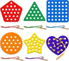 ❤【WOODEN LACING FRUIT TOYS】The lacing toy set includes 6 lacing ropes and 6 different sliced shapes: star, square, heart, circular, triangle, pentagon. These wooden threading toys help to develop kid's imagination, hand-eye coordination, fine motor, cognitive and visual perception skills ♦【EDUCATIONAL MONTESSORI TOYS】These threading toddler toys reference Montessori teaching activities, guide children develop strong essential skills and encourage them independence, such as shoe tying, zippering and buttoning ⭐【TODDLER TRAVEL TOYS】These travel toys are perfect for toddler airplane activities and road trip activities for kids, not only in planes and cars, but even restaurants and schools. Children focus on playing with rope toys to eliminate boredom and irritability from traveling 🔺【ATTRACTIVE DESIGN】A cute wooden caterpillar and log are attached to each end of the lacing rope, the caterpillar is used to thread the rope, and the log is used to stuck the hole of the wooden toys. When children thread the string through the holes of the geometric wooden threading toys, it looks like the caterpillar is "eating" the wood ⚪【SAFETY MATERIAL & DURABLE】 These lacing toys for kids 3-6, made of durable wood, lead-free, BPA-free, and no chemical smell. Suitable size easy for small hands to hold and play, it is also large enough to prevent accidental swallow. Perfect gift for Birthdays, Easter, Children's Day WARM FAMILY TIME Enjoy warm family time while everybody interacting together, playing children's wooden toys. To build a colorful childhood for your kids. GIFT TOYS FOR KIDS This lacing toy set is a great gift for kids, it can bring classic endlessly fun for toddlers, also can keeps children busy for hours. TRAVEL TOYS ACCOMPANY This is a great star & square & heart & circular & triangle & pentagon lacing toy for toddler, perfect size and portable carry around, kids can enjoy the happiness of wooden toys accompany during the trip and adults can feel more comfortable. Package: 1 x star slice (6.4 x 6.4 x 0.2 in) 1 x square slice (6.4 x 6.4 x 0.2 in) 1 x heart slice (6.4 x 5.6 x 0.2 in) 1 x circular slice (6.4 x 6.4 x 0.2 in) 1 x triangle slice (6.4 x 5.6 x 0.2 in) 1 x pentagon slice (6.4 x 6.4x 0.2 in) 6 x lacing rope with caterpillar (30.5 x 0.8 x 0.8 in) Material: Wood & Nylon Color: As picture shown