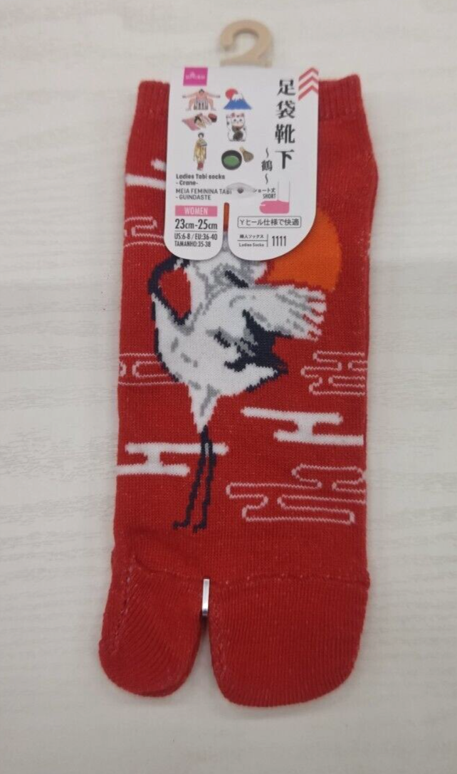 Item Title Description This is a set of 6 Japanese Tabi Socks designed for women. The socks feature various traditional Japanese designs such as Ukiyoe, Tsuru, Neko, Sushi, and Sumo. They are unused and made of polyester and polyurethane materials. The socks are designed in a Tabi style, which includes a separation between the big toe and the rest of the toes for wearing with traditional Japanese footwear. Please check the condition in the photo and purchase only if you agree with the condition. Please feel free to contact us if you have any question. Shipping Your valuable items will be shipped via Japan Post EMS and a tracking number will be provided. We will pack and ship your valuable items with the utmost care. International Buyers - Please Note: Import duties and taxes are not included in the item price or shipping cost. Please check with your country?s customs office to determine these additional costs prior to bidding or buying. Additionally, if the delivery address is in a remote area, there may be additional charges by FedEx or DHL. If such charges occur, you may be asked to pay an additional $15 to $20.