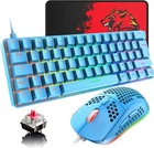 60% UK Layout Wired Gaming Keyboard and Mouse 62Keys Mini Compact Mechanical Keyboard, 19 Rainbow Backlit Full Anti-ghosting Keys+6 RGB Backlit 6400 DPI Lightweight Gaming Mouse 100% Brand Ne w Quality Assurance About this item 【Classic 60% Compact Mechanical Keyboard】This 60% gaming keyboard has a perfect size and it's good for Home and Office use, UV coated keycaps and injection laser carving ABS keycaps design, the letter of characters never fade.High quality durable ABS material, portable film keys and switches. No need to drive, plug and play directly, sensitive response.Support all keys without conflict. 【Rainbow Backlight Gaming Keyboard】Rainbow backlit mechanical gaming keyboard, Press FN+ \ to switch between 19 lighting effect modes, backlight brightness levels, adjustable breathing speed. The keycaps offering clear uniform backlighting WIN key can be disabled for gaming. The PC Gaming Keyboard has been ergonomically designed to be a superb typing tool for office work as well. The gaming Keyboard is built to withstand the average liquid spill. 【6400 DPI Adjustable Gaming Mouse】Wired professional gaming mouse uses hard-core custom chip, up to 6400 dpi (level 6 / editable), able to withstand 20g acceleration, has 50,000,000 Button life. The high-performance mouse configuration can meet your needs for fast web browsing and gaming. 【65G Ultralight Ergonomic Gaming Mice】This lightweight PC gaming mice is designed with O-shaped perforated shape, reduces weight, saves more energy, improves heat dissipation, extend the service life,ergonomic housing can fit your palm perfectly whichever way you hold it, make using more comfortable especially when gaming. 【Plug & Play】 This 3-in-1 wired gaming keyboard and mouse set are connected through USB interface, plug and play, it is very convenient to use. And they are compatible with systems such as Windows 2000 / XP / VISTA / 7/8/10 and MAC. Product Description Mechanical keyboard : - Keys Quantity: 62 Keys - Shaft: Blue Switch - Interface: USB Type-C Cable - Keyboard Size: 310*101*37 mm - Keyboard Weight: 600g - System Requirements: PC/MAC with USB port Windows 7/8/10/vista/XP Honeycomb mouse : - DPI: 800 - 1600 - 2400 - 3200 - 4800 - 6400DPI - Size: 128.5*67*38 mm - Mouse Weight: 69g ± 3g - Buttons: 7 Buttons with scroll wheel (Two side-buttons, One DPI switch, One backlight adjustment button) Package List: 1* Wired 62 Keys Mechanical Keyboard 1* Wired Honeycomb Mouse 1* User Manual 1* USB Cable 1* Key Puller Our goal is customer satisfaction! Items are generally shipped out the next business day after your payment has been cleared (Sat.&Sun. Excluded.) Orders from the US will be shipped out of the from outside US through economic transportation. The shipment usually takes 3-8 business days(Saturday and Sunday Excluded). We accept PayPal Only !! Payment must be made within 3 days of the order. If you can't checkout immediately after auction close, please wait for a few minutes and retry Payments must be completed within 3 days. 3 months Warranty. Buy with confidence! If you are not satisfied when you receive your item, please return it within 30 days for a replacement or money back. Please contact us before you return it. If item defective in 2 month, we will send you a replacement without extra charger, or offer refund after we receive the defective item. If item defective after 2 month, you can still send it back to us. We will send you a new one after receiving the defective item. But you have to pay the extra shipping fee. If you are satisfied with our service, please leave us a Positive Feedback , and we will do the same for you. We maintain high standards of excellence and strive for 100% customer satisfaction! Feedback is very important We request that you contact us immediately BEFORE you give us neutral or negative feedback, so that we can satisfactorily address your concerns. It is impossible to address issues if we do not know about them! Please contact us at eBay if you are not satisfied with the item when you receive it. All emails will be answered within 1 business day. If you do not receive our reply, please kindly re-send your email and we will reply to you asap. If you have not received answer email. Please email us again by your another email box or send us message. Serious Buyer Only! Please place bid only if you agree with all the terms!!