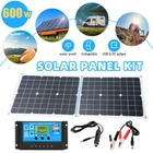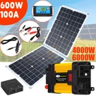 Brand new and high quality High quality material: The solar panel is made of monocrystalline silicon material, which is environmentally friendly, energy saving, high conversion rate and durable. Easy to use: foldable, easy to carry, does not take up space. Solar panels are small, lightweight and easy to use. With USB port: Easily charge devices like tablet, headset, camera, MP3, for PAD or other USB charging devices via USB charging cable. Wide range of applications: The solar panel kit has a wide range of applications and can be used in automobiles, RVs, ships, airplanes, outdoor farming, planting, tourism, small appliances and other places. Specification : Material: Monocrystalline silicon Output: 18V 12V 9V 5V Power: 600W Waterproof grade: IP67 Operating temperature: -40°C+85°C Product size: 34.5x79cm/13.58x31.1in Folded size: 34.5x39.5cm/13.58x15.55in Controller : Current: 100A Float Charge: 14.4V Charging: 13.2V Turn on the lamp voltage: solar panel 8V USB output: 2 USB outputs 5V/2.5A (maximum) Self-consumption: <10mA Working temperature: -35 - +60°C Package Included : 1x solar panel 1x cigarette lighter 1 pair x clip 1x Manual 4 000W/6000W Inverter 1. [4000W/6000W Power inverter] Car power inverter with 2 USB ports and AC outlet. surge power: 4000W/6000W, the power inverter comes with free cigarette lighter and 2pcs battery clips, providing 300Watt/500Watt continuous power, 4000watt/6000watt peaks power (Please make sure that the total rated power of the connected devices is ≤ 300W/500W). 2. [LED BATTERY DISPLAY] Battery Level Bar for LED Display shows the battery Capacity, which can remind you that when your battery no power. When connect the battery with inverter, this LED Screen work and show the real-time capacity of battery. It has five level (lattice) of the Battery Level Bar, and each lattice represents 20% of the battery power. When your battery is no power, the display will flash to remind you that you need to charge your battery. 3. [Fast Charging Dual USB ports] One AC Outlets and two USB ports can offer 100% fast charging for Mobiles phones, computers, laptop, breast pump, Nebulizer, Razors, medical rescue device, emergency equipment etc., can be as an Emergency Power Supply 4. [Multi Protection] Built-in fuses, safe charging design and cooling fan prevents the car power converter from over-heat, saving power and energy. over voltage, overload, over-current, short circuiting, under-voltage, overheating, short circuit protection. 5. [Lightweight design &Top Quality] Lightweight and compact, ideal for vacations, camping and work trips. It can be plugged into almost any 12V power output vehicle, providing charging opportunities anywhere. Product Specifications: Standard: U.S. Standard Output Peak Power: 4000W, 6000W (Optional) Frequency: 50Hz/ 60Hz USB Output Current: 2 x 2.1A Efficiency: 90% Input Voltage:10-15V Output Voltage: 110V/ 220V Output Voltage Range: 110V±10%/ 2200V±10% No-Load Current: <0.7A Low Voltage Protection: 9.5V High Voltage Protection: 15.5V Support: Overload Protection, Short Circuit Protection Product Size: about 22.0 x 10.0 x 14.7cm/ 8.7 x 3.9 x 5.8in Fetures: - 12V is generally for cars, 24V for trucks, 48V and 60V is generally for electric vehicles. - Available Range Of Rated Voltage Of Electrical Appliances : 100~120V - Safe Range Of our inverter Input Voltage:12V (9.8~15V) - 8 Safety Protection Function: ①Reverse polarity protection ②Low input voltage?protection ③High input voltage protection ④Over-current protection ⑤Short circuit protection ⑥Over temperature protection ⑦Overload protection ⑧Internal fuses Package Include : 1 x Converter Adapter 1 x Pair of Battery Clips 1 x Cigarette Lighter 1 x User Manual