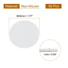 Description: Material: The round felt circle is made of non-woven fabric, which is moisture-proof, breathable, soft, lightweight and durable. It is very suitable for various handmade and DIY crafts, adding color and texture to your clothing and more. Pre-cut Design: The self-adhesive felt pads are pre-cut into circles, which brings convenience to your craft making, saving you time and energy in handmade projects, and saying goodbye to the trouble of cutting felt yourself! Easy to Use: Tear off the self-adhesive felt fabric sticker and stick it to the decoration. It is easy to remove and reusable. You can also sew it into the crafts, or use hot melt glue for better fixation. Application: Pre-cut felt pads are suitable for accessories, clothing, fabrics, decorative flowers, hairpins, brooches, collar pins, scrapbooks or other creative projects. They are also very suitable for handicrafts such as glass bricks or cards, paintings, etc. Specifications: Color: White Material: Non-Woven Diameter: 45mm/1.77" Thickness: 1mm/0.04" Package Contents: 60Pcs x Round Felt Circles