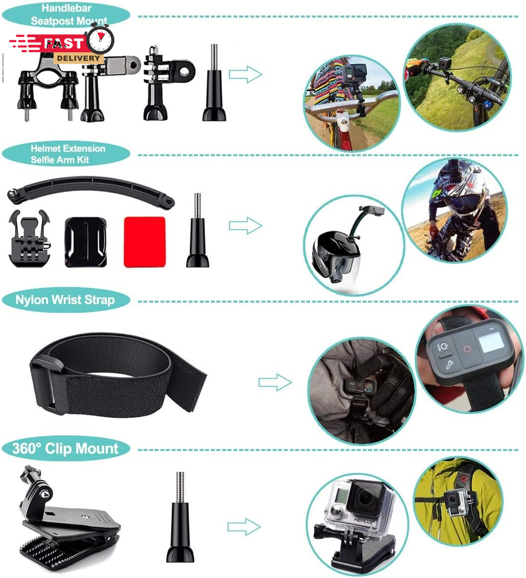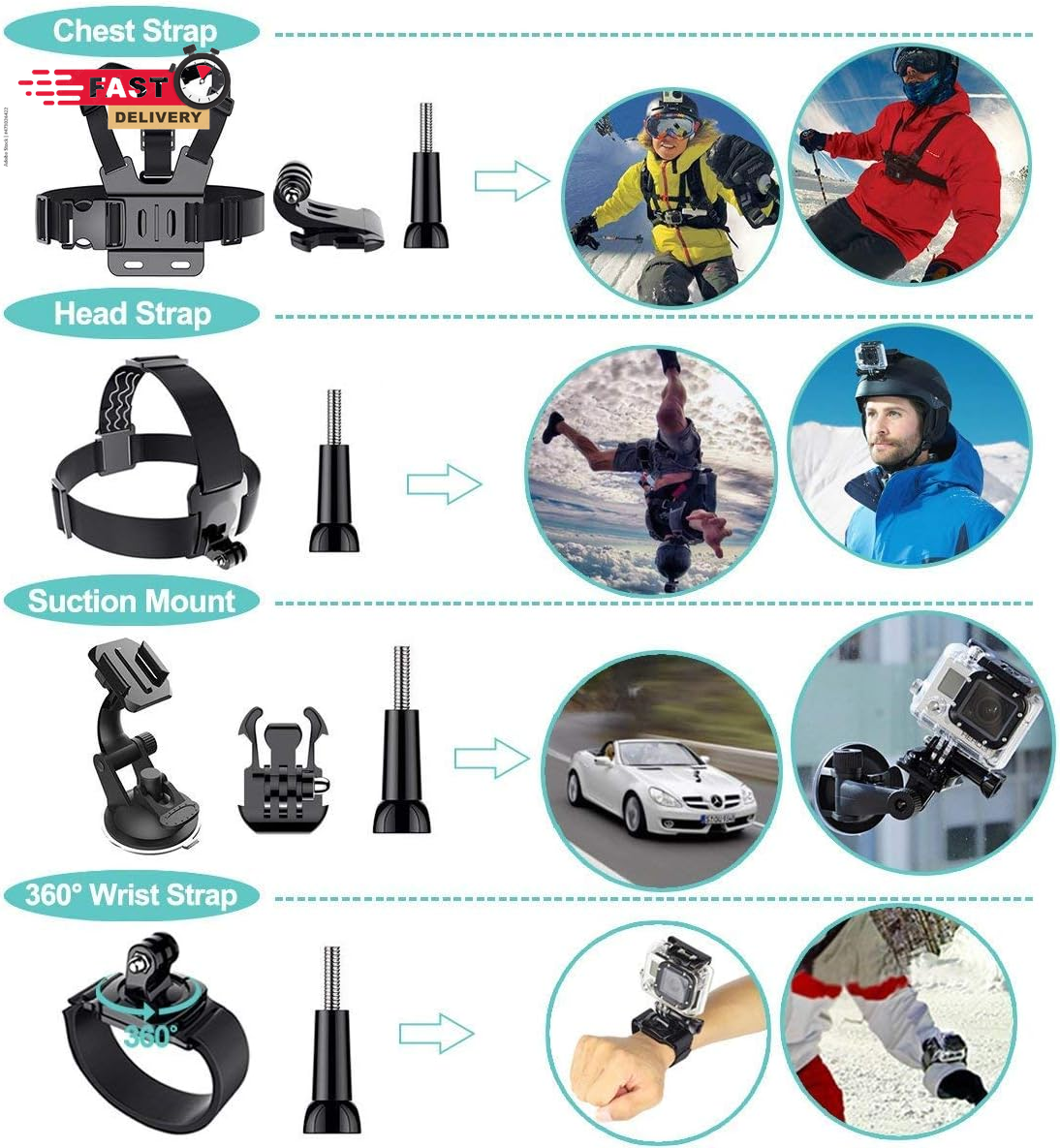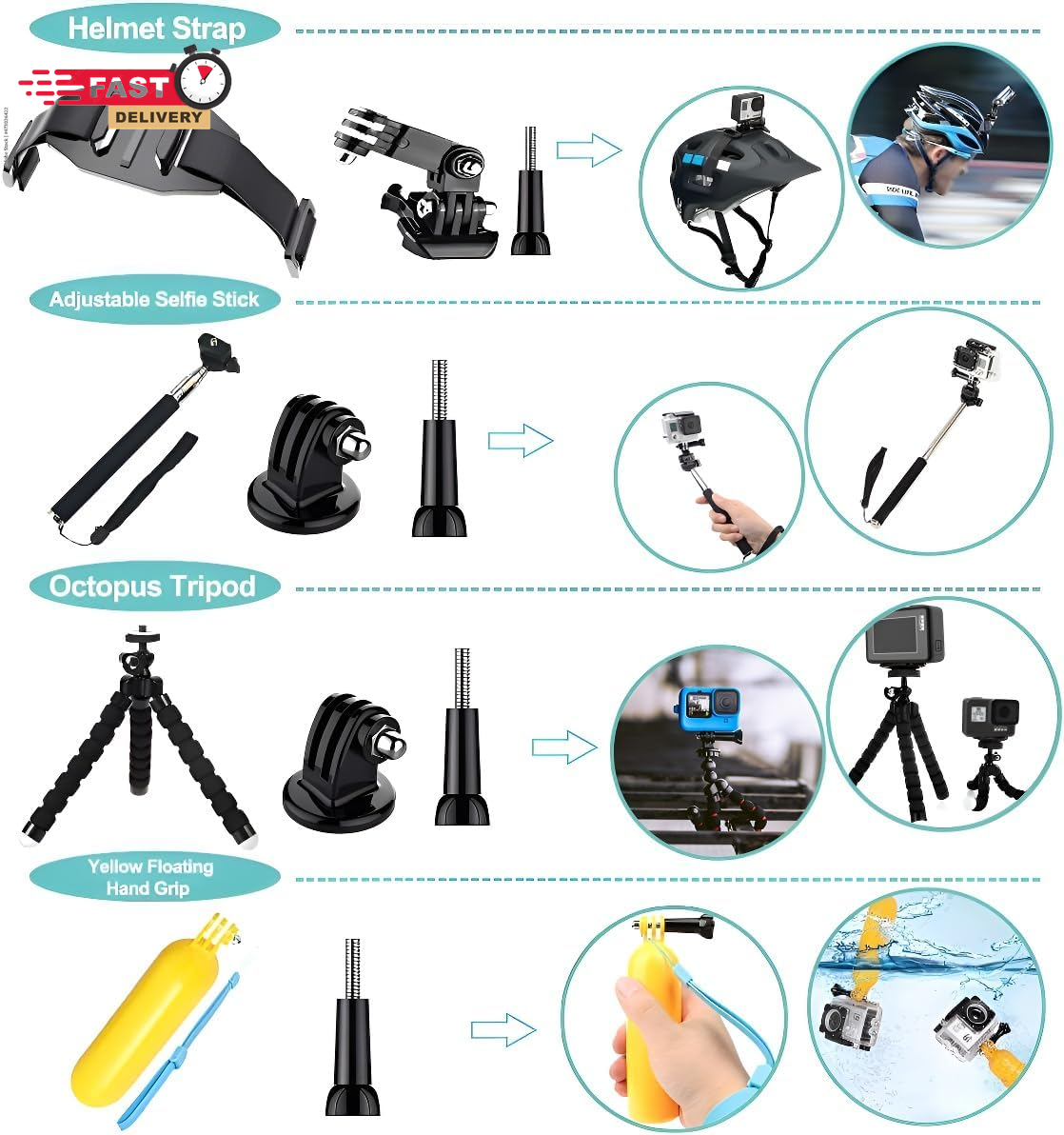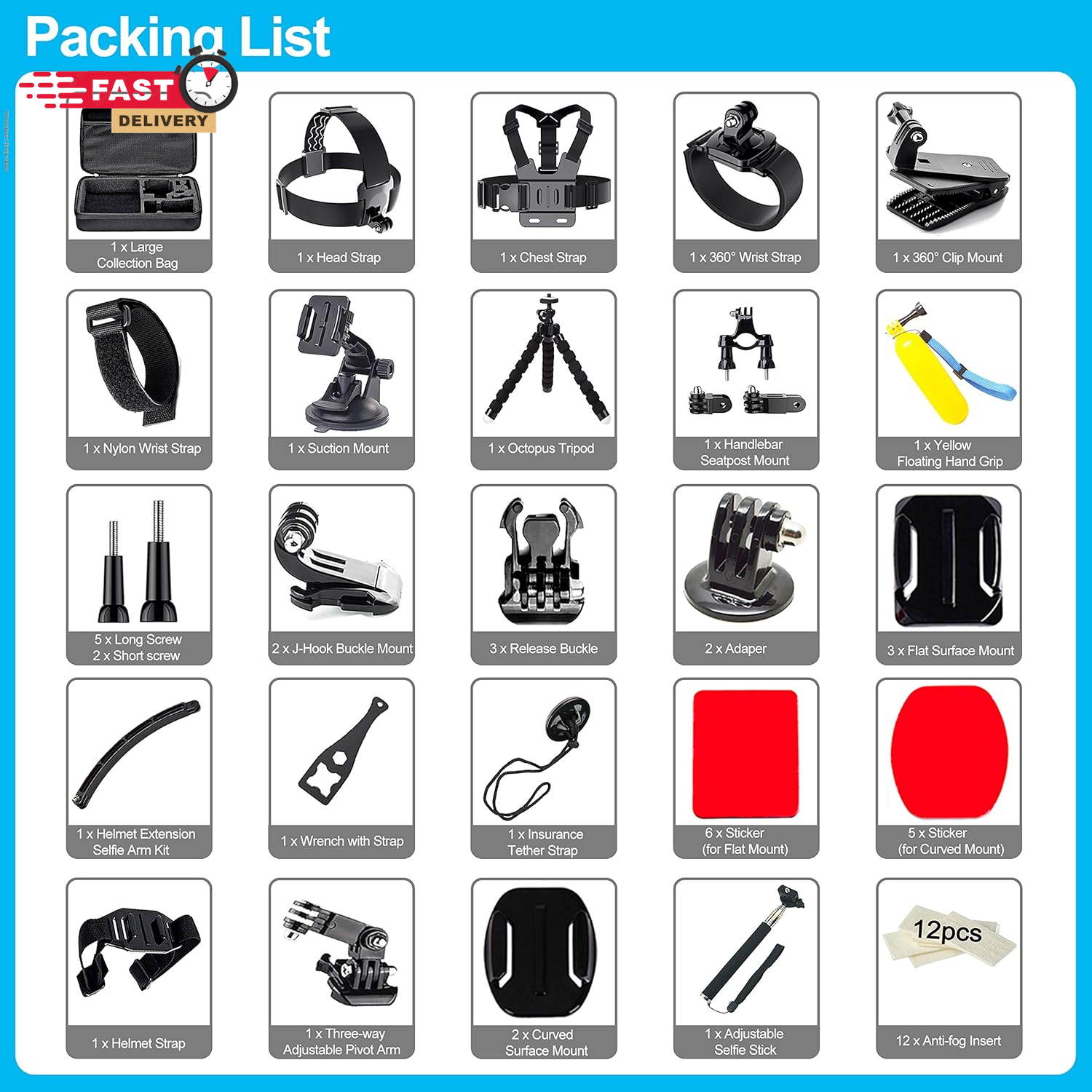 Store New Arrivals Add to Favorite View Feedback Contact 61 in 1 Action Camera Accessories Kit for Gopro Hero 13 12 11 10 9 8 7 6, Gopro Max, Gopro Fusion, Xiaomi, Insta360, DJI Osmo Action, AKASO APEMAN, Campark, SJCAM Description Color Black Brand Appolab Compatible Devices function(f) {var _np=(window.P._namespace("DetailPageProductOverviewTemplatesJava"));if(_np.guardFatal){_np.guardFatal(f)(_np);}else{f(_np);}}(function(P) { P.when('A').execute(function(A){ A.on('a:truncate:po-attribute-truncate-2:updated', function(data) { var isTruncated = !data.truncateInstance.getIfTextFits(); var seeMoreElement = document.getElementById('po-attribute-see-more-id-2'); if(seeMoreElement) { seeMoreElement.style.display = isTruncated ? '' : 'none'; } }) }); })); AKASO EK7000 GoPro Hero 13 12 11 10 9 8 7 6 5 4 Hero Session Gopro Max Insta360 Xiaomi Yi DJI AKASO Campark Action Camera See more Mounting Type Handlebar Compatible Phone Models function(f) {var _np=(window.P._namespace("DetailPageProductOverviewTemplatesJava"));if(_np.guardFatal){_np.guardFatal(f)(_np);}else{f(_np);}}(function(P) { P.when('A').execute(function(A){ A.on('a:truncate:po-attribute-truncate-3:updated', function(data) { var isTruncated = !data.truncateInstance.getIfTextFits(); var seeMoreElement = document.getElementById('po-attribute-see-more-id-3'); if(seeMoreElement) { seeMoreElement.style.display = isTruncated ? '' : 'none'; } }) }); })); AKASO EK7000 GoPro Hero 11 10 9 8 7 6 5 4 Hero Session Gopro Max Insta360 Xiaomi Yi DJI AKASO Campark Action Camera See more 【Chest Harness + Black Buckle Basic Strap Mount】-Direction and Angle can be adjusted according to your needs. Easy to capture immersive video and photos use the first person perspective. Capture the wonderful video and photo footage when you are riding. 【Floating Hand Grip + Long Screw】- Allows you to take photos no matter snorkeling with tropical fish or surfing, ensure your camera safety while you enjoy the beautiful view at the same time. NOTE: The set must be used in WATER SPORTS! 【Selfie Stick Monopod + Black Tripod Mount Adapter】- Fully-adjustable design. Allows you to capture unique angles and different points-of-view. Record every unforgettable moment with your friend or family. Make your journey with more fun. 【Car Suction Cup Mount + Vertical Surface J-Hook Buckle】- The camera can be attached securely to your car window. Recording the along-side scene for you, shoot at any different point of view, provides a broad range of motion and enjoy the POV filming. 【Bike Handlebar Holder Mount + Three-way Adjustable Pivot Arm】- You can adjust the size of the interface. No matter what size of your bike or motorcycle's handlebar is, it can be easily and securely installed on your bike or motorcycle handlebar and shoot with fantastic angle. Product description 61 in 1 Action Camera Accessories Kit for AKASO GoPro Insta360 Xiaomi DJI etc The video showcases the product in use. The video guides you through product setup. The video compares multiple products. The video shows the product being unpacked. For Snowboarding For daily use For Riding Helmet For Bike Handlebars For Climbing How to use these accessories? The chest strap is perfect for skiing Head strap can be used for climbing or jumping Specially designed for cars Wrist strap is very convenient frees up your hands Mountain bike mounts are very stable The nylon straps are very tight For use in 12 outdoor sports Clips specifically designed for backpack Essential helmet straps for riding Telescopic pole 0.8-1.2 meters Octopus holder is very flexible Yellow floats are essential for swimming or diving Bent arm allows for more angles Chest Strap Mount The chest strap helps keep your Gopro camera securely attached for filming and recording. Adjustable design fits all body types. The video showcases the product in use. The video guides you through product setup. The video compares multiple products. The video shows the product being unpacked. Suction Mount for Car Can be used on car front covers or glass windows, very strong. The video showcases the product in use. The video guides you through product setup. The video compares multiple products. The video shows the product being unpacked. Flat Surface Mount Can be fixed on many surfaces with screws and triangular devices. The video showcases the product in use. The video guides you through product setup. The video compares multiple products. The video shows the product being unpacked. Adaper + Sticker Sticky on the helmet, very suitable for competitions and recording the entire process of sports. The video showcases the product in use. The video guides you through product setup. The video compares multiple products. The video shows the product being unpacked. The video showcases the product in use. The video guides you through product setup. The video compares multiple products. The video shows the product being unpacked. Head Strap Mount Head strap camera mount, most widely used for documenting everyday adventures or vacations such as biking, zip lining or snorkeling. The video showcases the product in use. The video guides you through product setup. The video compares multiple products. The video shows the product being unpacked. Extendable pole Extends to 37.2 inches and retracts 8 inches. The video showcases the product in use. The video guides you through product setup. The video compares multiple products. The video shows the product being unpacked. Floating Hand Grip Suitable for underwater photography such as swimming, diving, surfing and many more sports. Wrist strap design provides extra protection. The video showcases the product in use. The video guides you through product setup. The video compares multiple products. The video shows the product being unpacked. Very useful Perfect for Diving, Surfing, Motocycle,Climbing,Vlog, skiing, Bicycling, canoe and more other high speed sports activities. Common Usage Scenarios Excellent Travel Tripod
