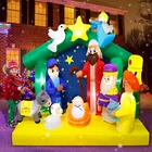$ 124.088FT Christmas Inflatables Joy Nativity Scene 2025 NEW LED Outdoor Decoration