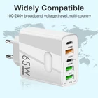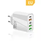 65W PD USB C+A Charger Plug Quick Charge Multi Port Travel Adapter Fast Wall Charger for iPhone Samsung Android Phones Universal Fast-ChargingWith 65W high power output and quick charging protocols support for Apple/Samsung/Huawei/Xiaomi, this usb-c adapter charges your 13” MacBook Air to 100% in just 1.5 hours and iPhones 2times faster than industry standard. Incredibly Small Volume GaN tech concentrates 65W of powerful power in the compact size of a palm, portable enough to carry anywhere. The streamlined Gallium Nitride power system ensures a smaller and lighter charger with higher charging efficiency. Safe & ReliableBuilt-in intelligent chip enables the smart adjustment of output voltage, current and power via HPS technology when multiple devices are charged at the same time, higher charge conversion efficiency, lower temperature, and safe for use. Input parametersAC100-240V 50/60Hz 0.5A; Output parameters5V/7.2A9V/4.0A12V/3.0A; Package Included: 1 x 65W Charger