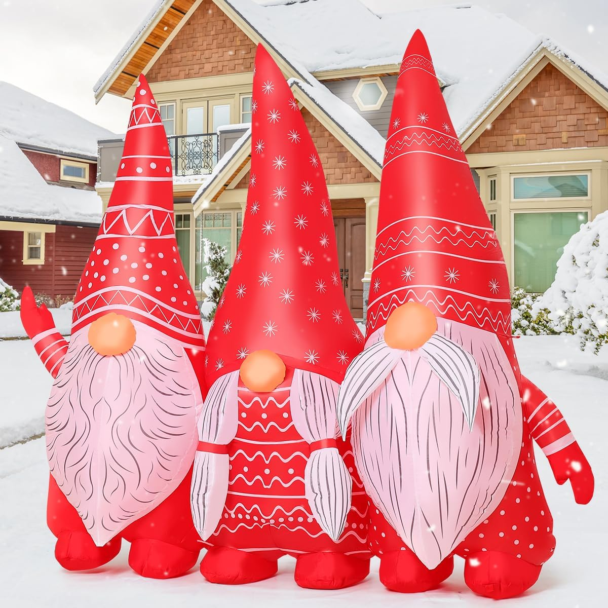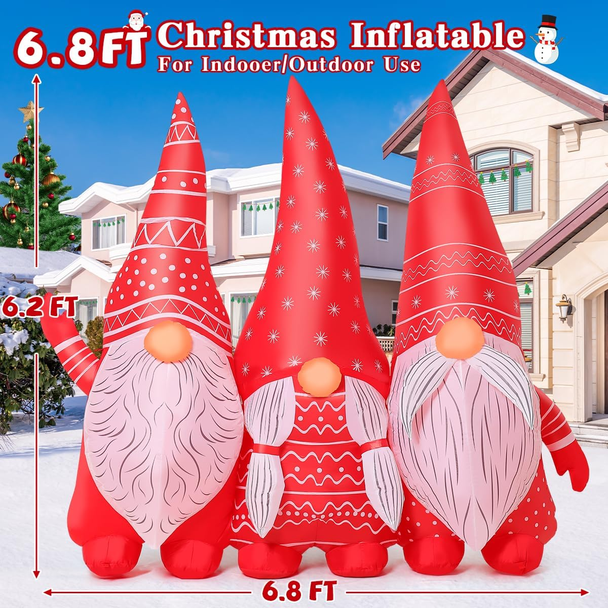 Christmas Inflatables Decoration: The three gnomes are dressed in red and white Christmas costumes, especially the snowflake pattern on their hats, which are exquisitely designed and special, and the built-in bright LED lights create a festive atmosphere on your yard Fast Inflation and Certified Safety: Our gnomes christams inflatbles decorations outdoor are equipped with a high-performance water-resistant fan, which can be itself inflated quickly; Supported by a CE and UL-certified adapter, complemented by a 10-foot power cord Strong and Weather-Resistant: Crafted of high-quality water-resistant polyester, our gnomes inflatable blow up decoration is strong for use; Rain or shine, Goosh inflatable Christmas gnomes decorations are enough to last throughout the holiday season Easy Use and Storage: Our package included everything needed for an easy setup and storage: sandbag, ground stakes, securing ropes, and a storage bag; After the holiday, just deflate, fold, and store for the next festive season using the provided storage bag Customer Service: GOOSH is a professional inflatable decoration seller in the united states; If you have any questions, we are here for you; Bright colors, long-lasting performance, trusted by 50,000+ users Product description Merry Christmas The video showcases the product in use. The video guides you through product setup. The video compares multiple products. The video shows the product being unpacked. Christmas Inflatable Gnomes Outdoor Decoration Merchant Video 1 Fast Inflation 2 Quality Material 3 Product Accessories 4 Usage Steps 5 Our Advantages 1 Sunny & Rainy 2 Daytime & Night 3 Bright Leds 4 Christmas Gift 5 Product QA Are you ready to decorate your yard for Christmas? GOOSH Inflatables Decorations for Christmas GOOSH Inflatables Decorations for Christmas Add to Cart Add to Cart Add to Cart Add to Cart Add to Cart Add to Cart Add to Cart Customer Reviews 4.3 out of 5 stars 1,751 4.4 out of 5 stars 80 4.4 out of 5 stars 16 4.6 out of 5 stars 731 4.8 out of 5 stars 170 4.7 out of 5 stars 29 4.6 out of 5 stars 81 Price $25.99 $ 25 . 99 $41.99 $ 41 . 99 $39.99 $ 39 . 99 $29.99 $ 29 . 99 $25.99 $ 25 . 99 $19.99 $ 19 . 99 $29.99 $ 29 . 99 Built-in LEDs ✔ ✔ ✔ ✔ ✔ ✔ ✔ Waterproof ✔ ✔ ✔ ✔ ✔ ✔ ✔ Beautiful Box ✔ ✔ ✔ ✔ ✔ ✔ ✔ Fast Inflation ✔ ✔ ✔ ✔ ✔ ✔ ✔ Quality Materials ✔ ✔ ✔ ✔ ✔ ✔ ✔