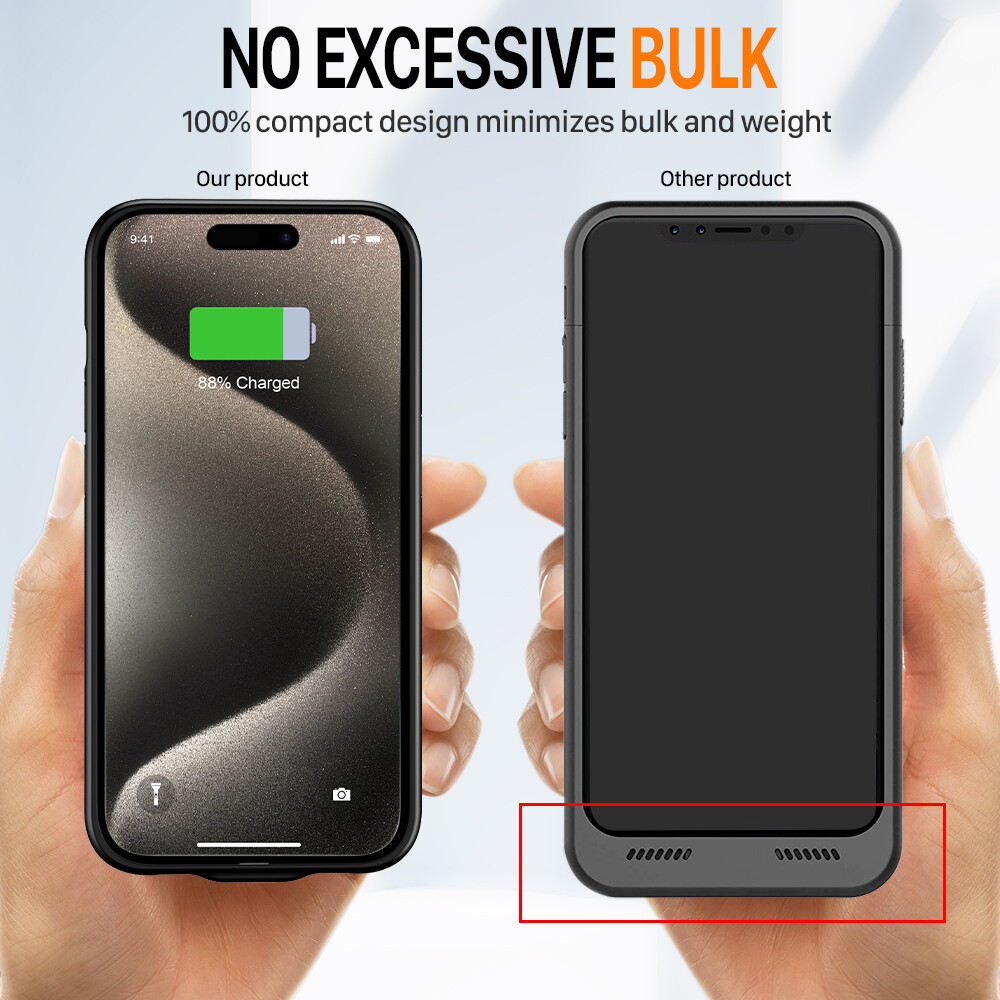 New TQTHL High Quality External Battery Case / Backup Power Bank Compatible with: iPhone 15 PRO (6800mAh) 6.1" Please note that this is a variant series, we will ship it according to your choice Features: Extended Battery Life: The charger case offers substantial extra battery life, allowing you to use your iPhone 15 Pro for an extended period without worrying about running out of power. Custom-Fit Design: The case is precisely designed to fit the iPhone 15 Pro , providing a snug and secure fit for your device. Convenient Charging: The case allows for convenient charging of your iPhone 15 Pro on the go, making it perfect for travel, work, or other situations where access to a power source may be limited. Slim Profile: Despite the added battery capacity, the case maintains a sleek and slim profile, ensuring your device remains easy to handle and doesn't add unnecessary bulk. Easy Installation: Installing and removing your iPhone from the case is a hassle-free process, and it offers easy access to all your device's ports and buttons. Specifications: Input current: 5V 1800mA Output current: 5V 1500mA Working temperature: 0°C-45°C Battery capacity: 6800mAh Storage / transport temperature: -20 ° C ± 50 ° C Charging time: ~4 hours Package included: 1 x Battery charger case 1 x User Manual