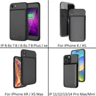 6800mAh Battery Charger Case For iPhone 16 15 14 13 12 Mini 11 ProMax X/XS/XS/MAX 8 7 6 Plus Charging Cover Specific: Material: TPU /Plastic Design/Finish: Slim Type:Power Bank,Battery Case,Portable Charger,Battery Charger Case Features: Rechargeable Exten ded,Fast Charger, Shockproof,Lightweight,360 Protection ,Slim, TPU Cover Compatible M ode l: Compatible Model: For iPhone 11/11Pro/11 Pro Max ,For iPhone 12/12Mini/12 Pro/12Pro Max, For iPhone 13/13Mini/12 Pro/13Pro Max, For iPhone 14/14 Plus/14 Pro/14 Pro Max, for iPhone xs max,for iPhone xr,for iPhone x/xs Battery capacity: 7000mAh f or iPhone 16 7000mAh f or iPhone 16 Plus 7000mAh f or iPhone 16 Pro 7000mAh f or iPhone 16 Pro Max 6800mAh f or iPhone 15 6800mAh f or iPhone 15 Plus 6800mAh f or iPhone 15 Pro 6800mAh f or iPhone 15 Pro Max 6800mAh for iPhone 14 6800mAh for iPhone 14 Plus 6800mAh for iPhone 14 Pro 6800mAh for iPhone 14 Pro Max 6800mAh for iPhone 12 mini 6800mAh for iPhone 12 pro 6800mAh for iPhone 12 pro max 6800mAh for iPhone 13 mini 6800mAh for iPhone 13pro 6800mAh for iPhone 13 pro max 6800mAh for iPhone 11 6800mAh for iPhone 11pro 6800mAh for iPhone 11 pro max 6800mAh for iPhone xs max 6800mAh for iPhone xr 6800mAh for iPhone x/xs 6000mAh for iPhone 6 6000mAh for iPhone 7 6000mAh for iPhone 8 6000mAh for iPhone SE2 6500mAh for iPhone 6P 6500mAh for iPhone 7p 6500mAh for iPhone 8P Easy To Install & Use: Si mply slide your For iPhone 11 into the smart battery case to install. Press and hold the power butt on for 3s to start charging. Ultra-slim battery case, no excessive bulk, portable for daily usage, business and trips. Protection : High-impact protection. A tough polycarbonate exterior dissipates impact, helping to protect your For iPhone from bumps and drops. Doesn't block si gnal. Charge and Dat a Sync compatible Supports listening to s o n gs/Calls/Playing games Protects your phone from damage Items included : 1x Battery Case 1x User manual REMARKS: 1. No cables are included, please use your original charging cable to charge it; 2. Ca r audio via plug NOT supported. 3. B attery case activation is manual, not automatic. 4. Wireless charging is NOT sup ported by this battery case. 5. DOES NOT protect the s creen