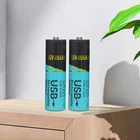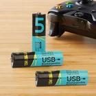 6PCS 2200mWh 1.5v Rechargeable AA Lithium Batteries USB Type C Charging for Toys Package included: 6 x USB AA Lithium Batteries Rechargeable 1.5V 3 x 2-in-1 USB Type-C Charging Cable Features: 1.【Easy to Charge with Type C Cable】: Unique USB charging design, Negative charging and rechargeable AA batteries are built in advanced Type-C port. USB Rechargeable lithium lion aa batteries with 2-in-1 USB charging cable for fully charge in around 2.5 hours. You can charge 2 packs lithium ion AA batteries at the same time, no longer need for traditional aa battery charger or adapter. With USB Type C cable, you can fully charge it within 1-1.5 hours. Built-in LED charging indicator, green LED blinks when charging; Green LED stays on when fully charged. Indicator is on charging type c port. 2.【1000+ Cycle and Eco-friendly USB AA Battery&Environmental protection】: Thanks to advanced lithium-ion technology, USB rechargeable AA batteries can be charged 1000+ times, saving thousands of alkaline AA batteries, reducing pollution, saving you money, and environmental protection. AA lithium rechargeable batteries do not contain heavy metal pollutants and can be recycled to avoid environmental pollution 3.【High Capacity 1.5V Lithium AA Rechargeable Battery】: The voltage of rechargeable AA batteries is 1.5v. Consistent 1.5v output can make your device work more stable; strong power, same effect as alkaline AA batteries. USB aa batteries are perfect for toys, remote controls, etc. 4.【Protected AA lithium battery】: Designed to protect the safe operation of the chip, it supports a variety of safety functions, including overcharge, overdischarge, overtemperature and short circuit protection. Note: These batteries cannot be used for products with continuous high current consumption, if the discharge current is higher than 2A due to overcurrent protection, the battery will automatically turn off. 5.【Long lasting rechargeable batteries】: This AA batteries is widely applied to Outdoor Lamp, Children's toys, Electric toothbrush, TV Remote, patio lights, LED Candle, Radio, Camera, Clock, Shaver, Gaming Controller,photography lights ,it is great replacement for non-rechargeable battery. Specification: 1. Product Name: 1.5V USB AA Rechargeable Battery 2. Battery size: 1.96inch *0.55inch (14mm * 50mm) 3. Product model: AA No.5 battery 4. Product voltage: Type C -1.5V 5. Battery capacity: 2200mwh 6. Built-in LED charging indicator, green LED blinks when charging; Green LED stays on when fully charged. 7. Charging: TYPE-C intelligent fast charging 8. Recommended Uses For Product: Led Flashlight, Remote Controls, Electric Toys, Smart Door Lock Warm Tips: 1. Before use, please remove the plastic packaging film of the battery. 2. Please check the ""+"" and ""—"" directions of the battery before you charge the battery. 3. Do not put the product into fire, short circuit, disassemble and extrude. 4. Do not mix charging with different type of batteries, which may explode or leak, causing personal injury. 5. Please use up the power each time, then recharge it otherwise it will affect its capacity and lifetime. 6. Please take out the battery if you won't use for a long time to avoid battery leakage. On Jan 5, 2025 at 21:34:14 PST, seller added the following information: