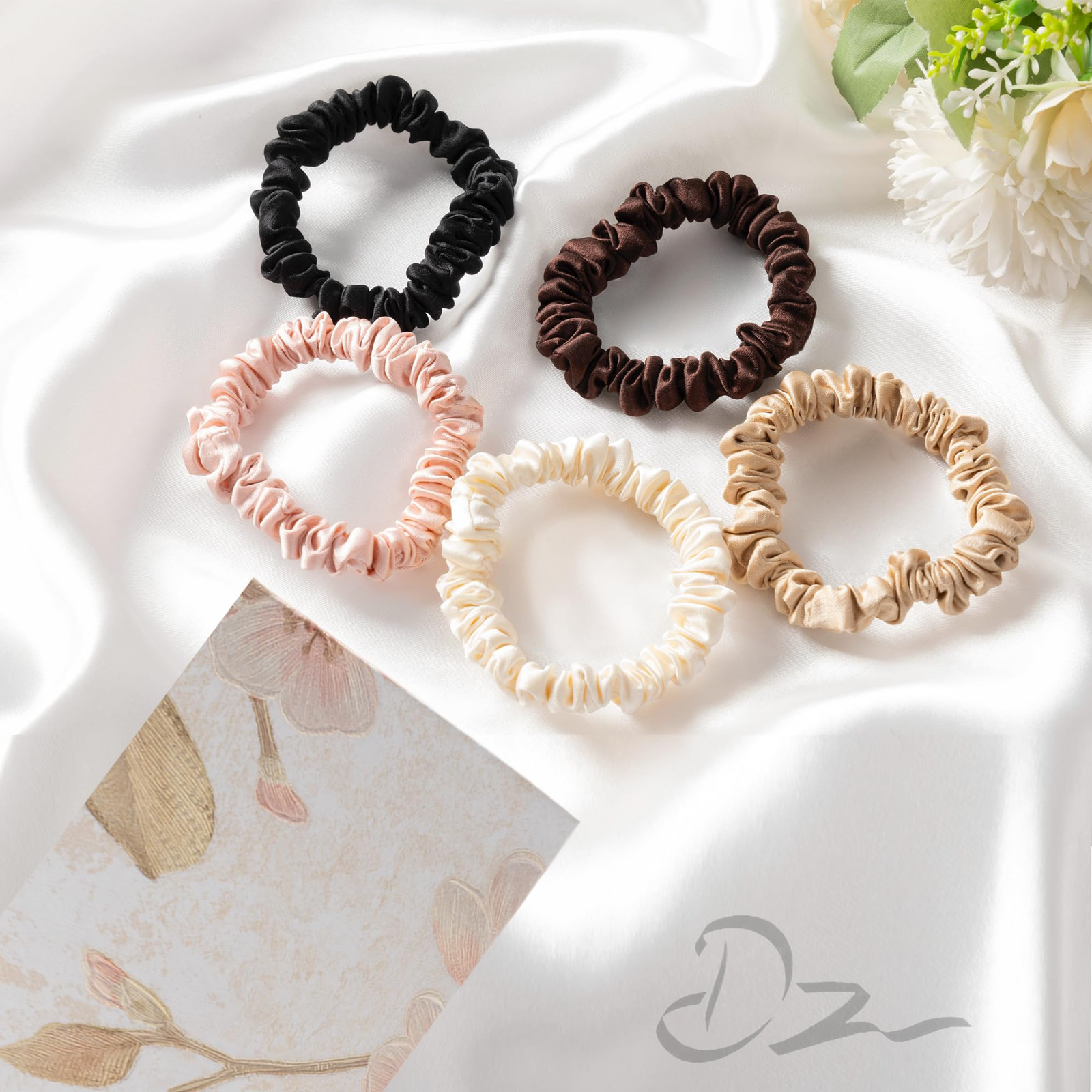 Brand: Dnezoy Color: -6pcs Autumn Set Features: Premium Material: This hair scrunchie is made of 30-micron 6A grade mulberry silk. It's 100% pure silk. You can wear it all day and night without it leaving marks on your hair, and it will help reduce hair breakage, split ends, shedding, and frizz. High-Quality Elastic Band: The high-elasticity rubber band inside adapts to various hair types and volumes. The perfectly designed length securely holds your hair in place while being gentle enough to wear around your wrist. Detailed Specifications: This silk scrunchie set comes with 6 pieces (0.5 inches in width and can be stretched to 7.2 inches in length), offering a variety of styles to choose from. With classic and timeless color combinations, it easily matches your outfit and personal style. Craftsmanship: Each scrunchie is meticulously sewn by experienced craftsmen with over a decade of tailoring experience. The hidden stitching reveals the craftsman's dedication and attention to detail. We hope that through this thoughtful effort, we can bring happiness to you and your loved ones. Perfect Gift Choice: This silk scrunchie is ideal for various occasions such as birthday parties, Mother's Day, Valentine's Day, Christmas, teacher appreciation events, etc. Give it as a gift to your loved one, and we believe she will appreciate the thoughtfulness behind it after using it. Package Dimensions: 7.1 x 2.9 x 0.7 inches