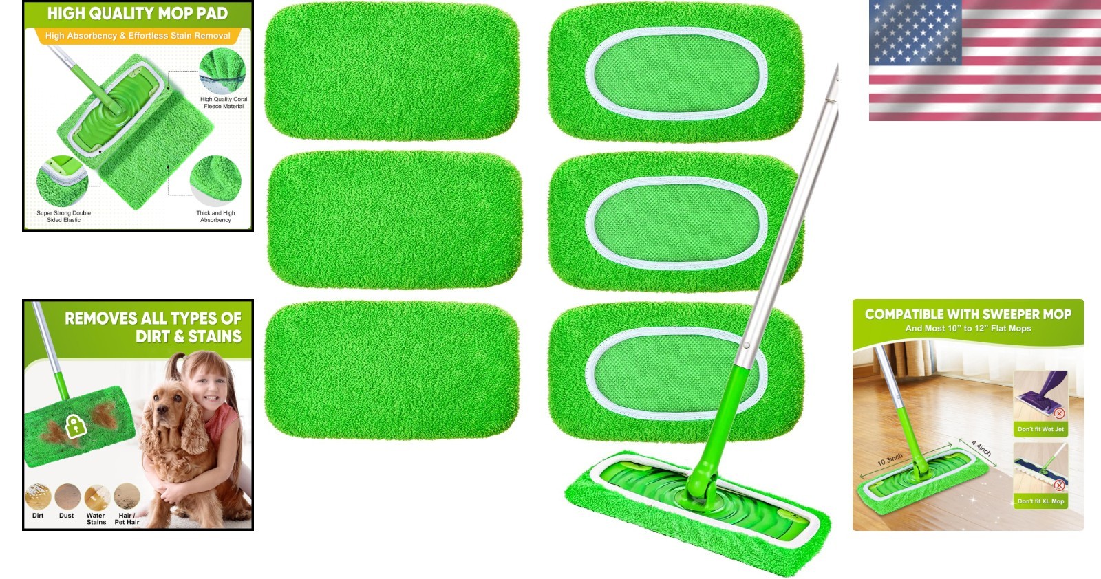6-Pack Mop Pads - Machine Washable Coral Fleece for Effortless Cleaning ‹ › ‹ › ‹ › ‹ › ‹ › ‹ › ‹ › ‹ › ‹ › 6-Pack Mop Pads - Machine Washable Coral Fleece for Effortless Cleaning Key Features: ✔️ Universal Compatibility & Fit: Designed to fit conveniently with Sweeper Mops and all 10-12 inch flat mops, excluding Wet Jet, Sweeper Vacuum, and Sweeper XL models. Perfect as a refill option! 🌟 Microfiber Deep Cleaning: Made from 100% coral fleece microfiber, these pads trap 99% of dust, pet hair, grease, and stubborn dirt. Enjoy superior water absorption—leaving your floors streak-free and refreshingly clean. ♻️ Reusable & Eco-Friendly Savings: Designed to endure over 150 washes, saving you money and reducing plastic waste. A perfect alternative to disposable mop pads, promoting a greener lifestyle while effectively cleaning your floors. 🌊 Wet/Dry Dual Functionality: Transform these pads into wet mop pads for exceptional liquid absorption or keep them dry for incredible dust capture—better than typical sponge or Bona mop pads. 🛡️ Safe on All Floors & Easy Use: Gentle yet effective on hardwood, vinyl, marble, stone, tile, and cement without scratching. Includes 6 reusable mop pads, sized 9.45x5.9" to 12.99x9.06" stretched, with instant attachment for a slip-free experience. Why Choose Our Mop Pads? Are you tired of the endless cycle of disposable mop pads that harm both your wallet and the environment? Elevate your cleaning routine with our 6-Pack Mop Pads, crafted from innovative coral fleece microfiber that ensures your floors shine and stay protected. Say goodbye to stubborn dirt and hello to effortless cleaning, while contributing to a sustainable future. Choose efficiency and eco-responsibility – order your 6-Pack Mop Pads today and create a home that sparkles with freshness! Shipping Free & Fast Shipping - We offer free shipping to most of the USA with a normal delivery time of 3-7 days. However, due to the current situation, additional delivery time (up to 3 weeks) may be required for some items. Alternative Carriers - We may use alternative carriers (e.g. USPS, FedEx, UPS, etc.) to ensure your package arrives safely and on time. Due to the use of multiple carriers, we are unable to provide a tracking number automatically. Handling Time - Orders are processed and shipped within 1-2 business days of receiving cleared payment. Shipping Restrictions - Shipping to Alaska, Hawaii, Puerto Rico, Guam, and other US territories may incur shipping charges or delivery restrictions. Please contact us before ordering, or your order can be refunded/cancelled. State Restrictions - There may be restrictions based on your state of purchase. For example, certain items may not be shipped to California due to state regulations. Contact for Tracking Updates - If you require tracking updates or have any concerns about the delivery of your order, please feel free to contact us, and we will be happy to assist you. Return 30-Day Hassle-Free Returns - We want you to be completely satisfied with your purchase. If you are not, you can return the item within 30 days of receiving it for a full refund or exchange. Easy Return Process - To start a return, simply contact us and we will provide you with a prepaid return shipping label and detailed instructions. Restocking Fee - There are no restocking fees for returns. However, the buyer is responsible for return shipping costs if the return is not due to a seller's error. Refund Processing Time - Refunds will be processed within 5 business days of receiving the returned item in its condition. Payment We accept all major credit cards, PayPal, and Apple Pay for your convenience. Your payment information is secure and encrypted to ensure a safe and seamless transaction. Please complete your payment within 3 days of purchase to avoid any delays in shipping. Feedback Your feedback is extremely important to us. We strive to provide the best products and customer service possible. If you are satisfied with your purchase, please take a moment to leave us a positive review. If you have any concerns or issues with your order, please contact us before leaving negative feedback. We are committed to resolving any problems and ensuring your satisfaction. Contact Us If you have any questions or concerns, please feel free to out to our customer support team. You can contact us through the eBay messaging system. We are available Monday to Friday, 9:00 am to 5:00 pm EST, and we will do our best to respond to your inquiry within 24 hours. Buy it now and enjoy a pleasant shopping experience! Unit Quantity: 6 Suitable For: Flat Mop,Sweeper Mop,10-12 inch flat mops Features: Eco Friendly,Universal Compatibility,Washable,Deep Cleaning,Microfiber,Reusable,Machine Washable,Dual Functionality,Gentle on Surfaces,Streak-Free,Cost-Effective,Non-Scratch Type: Mop Refill Pad Head Material: Microfiber Color: Green